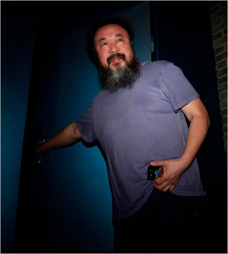 Ai Weiwei after being released from detention on Wednesday, via New York Times