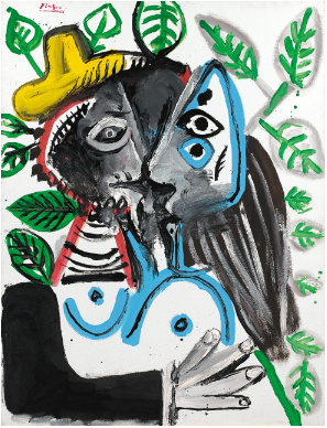 Pablo Picasso, Couple, Le Baiser, 1969 (est. $9.7-13 million, realized $10.6 million), via Sothebys.com