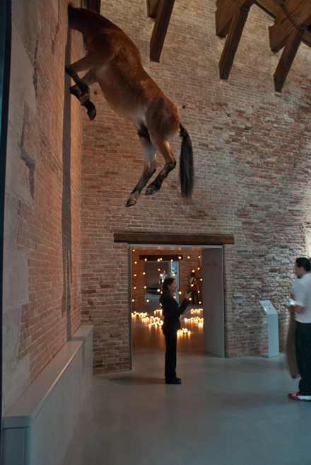 “In Praise of Doubt” is the second half of two exhibitions currently staged by the Francois Pinault Foundation. It housed in the Punta della Dogana just a stone’s throw from Palazzo Grassi, where part one, “The World Belongs to You” can be found. The two exhibitions share a curator, Caroline Bourgeois, and both run in parallel with the Venice Biennale 2011.