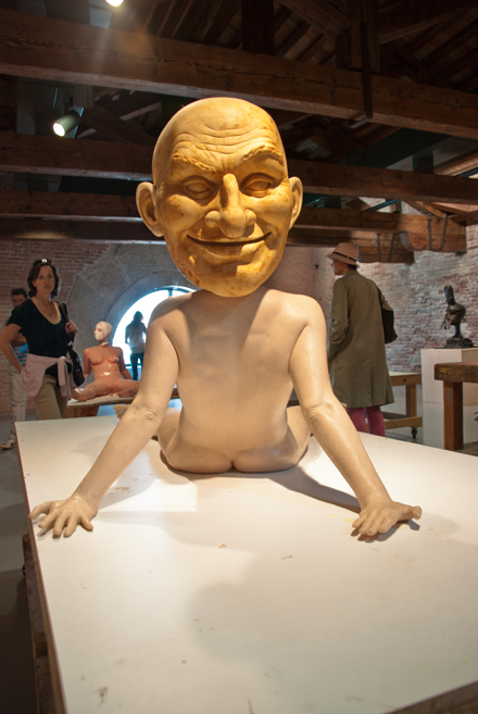 The exhibition presents both historical pieces and new works, several of which are site-specific projects. The theme, as hinted by its title, is uncertainty, the questioning of identity, and revisiting intimate space in relation to the space of the artwork. The artists included are art world regulars Adel Abdesemed, Marcel Broodthaers, Maurizio Cattelan, Subodh Gupta, David Hammons, Roni Horn, Thomas Houseago, Donald Judd, Edward Keinholz, Jeff Koons, Paul McCarthy, Julie Mehretu, Bruce Nauman, Sigmar Polke, Thomas Schutte, Sturtevant, Tatiana Trouve, and Chen Zhen. Out of these twenty, a surprising half have never been exhibited before in an exhibition by the Francois Pinault Foundation.