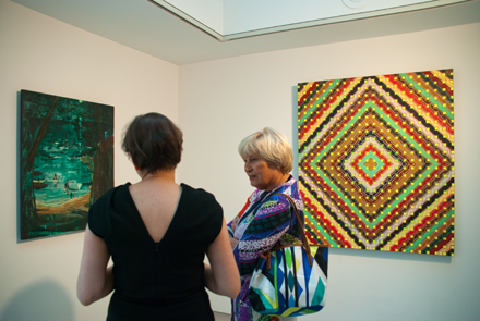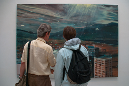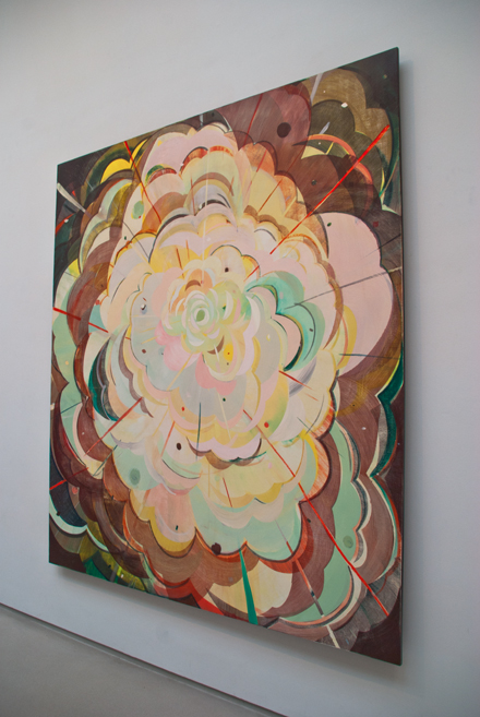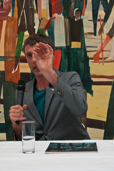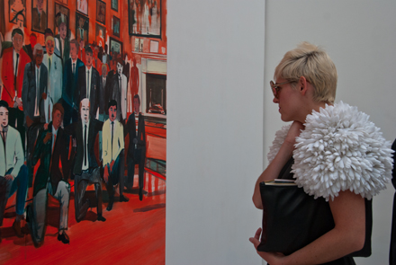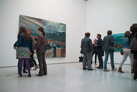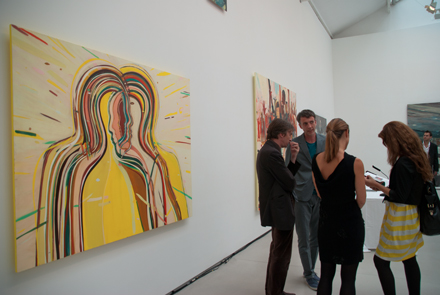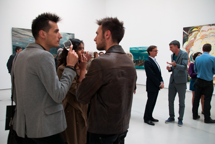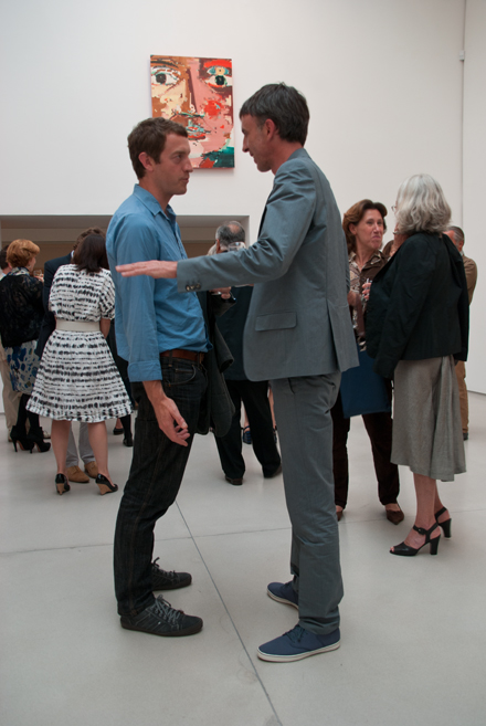AO was on site for the second exhibition of Jules de Balincourt, “Worlds Together, Worlds Apart ” at Galerie Thaddaeus Ropac in Paris. The opening began with a private talk given by art critics Nicolas Bourriaud (best known for his seminal book “Relational Aesthetics”) and Judith Benhamou-Huet, and focused on de Balincourt’s influences and ways of processing. The New York based artist explained his recent work, which moves between abstraction and figuration, and compared it to a “big zapping.” Jules de Balincourt worked 6 months on the set of paintings, which were created specifically for this show.