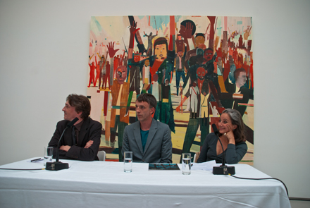Nicolas Bourriaud, artist Jules de Balincourt and Judith Benhamou-Huet