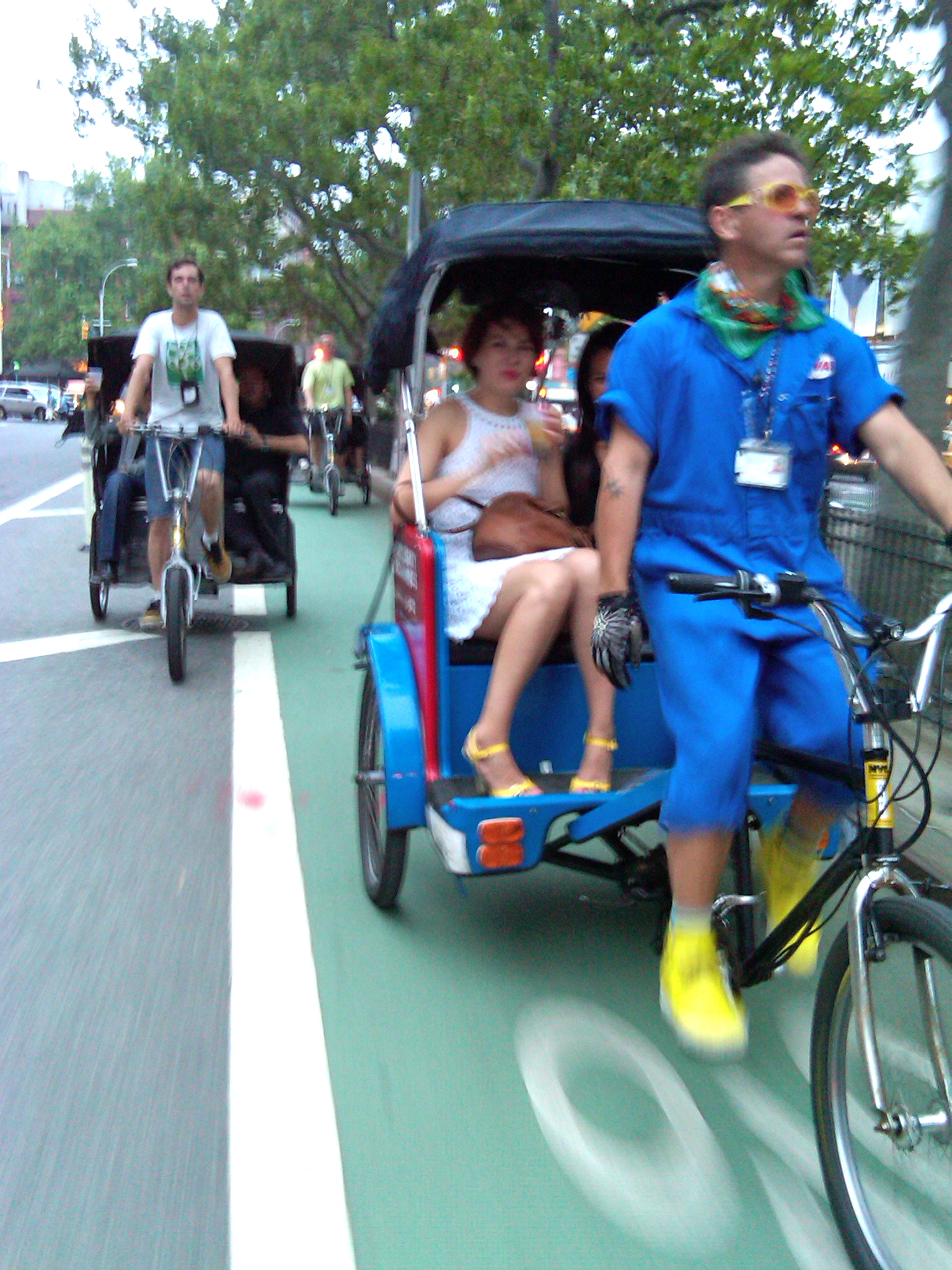 Rickshaw-style pedicabs parked on Orchard street. All photos by L. Streeter for Art Observed