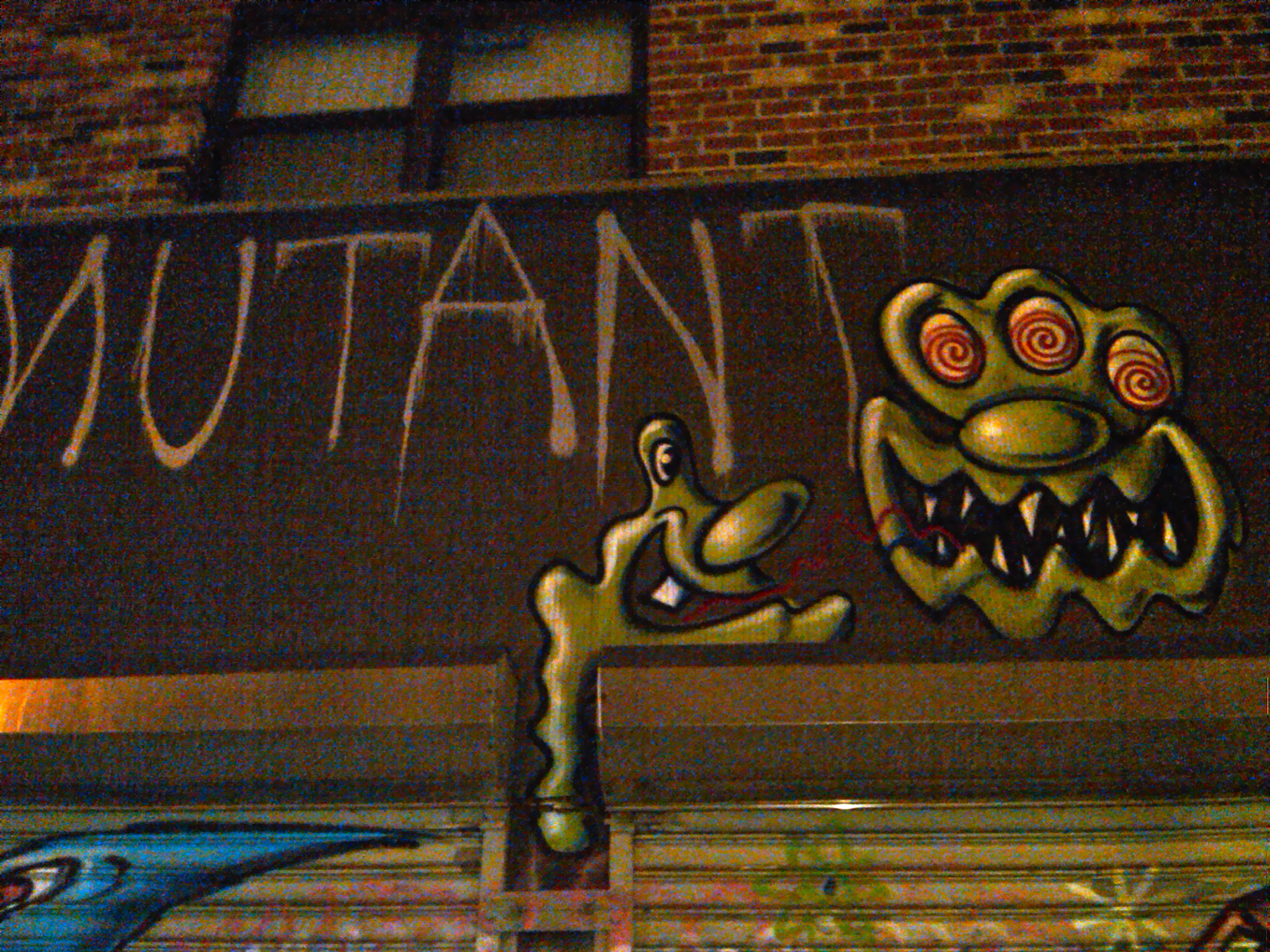Kenny Scharf, known for his distinctive cartoon-ish style and unconventional public art, began creating street art in New York in the late 1970’s after moving from LA to the East Village. He immediately fell in with the ranks of artists like Keith Haring and Jean-Michel Basquiat. After receiving his degree from SVA in 1980 and being selected for the Whitney Biennial in 1985, he gained wide-spread popularity. Heavily influenced by science fiction and the cartoons he saw growing up as a child, he created characters that mimicked pop culture before such a term even existed.