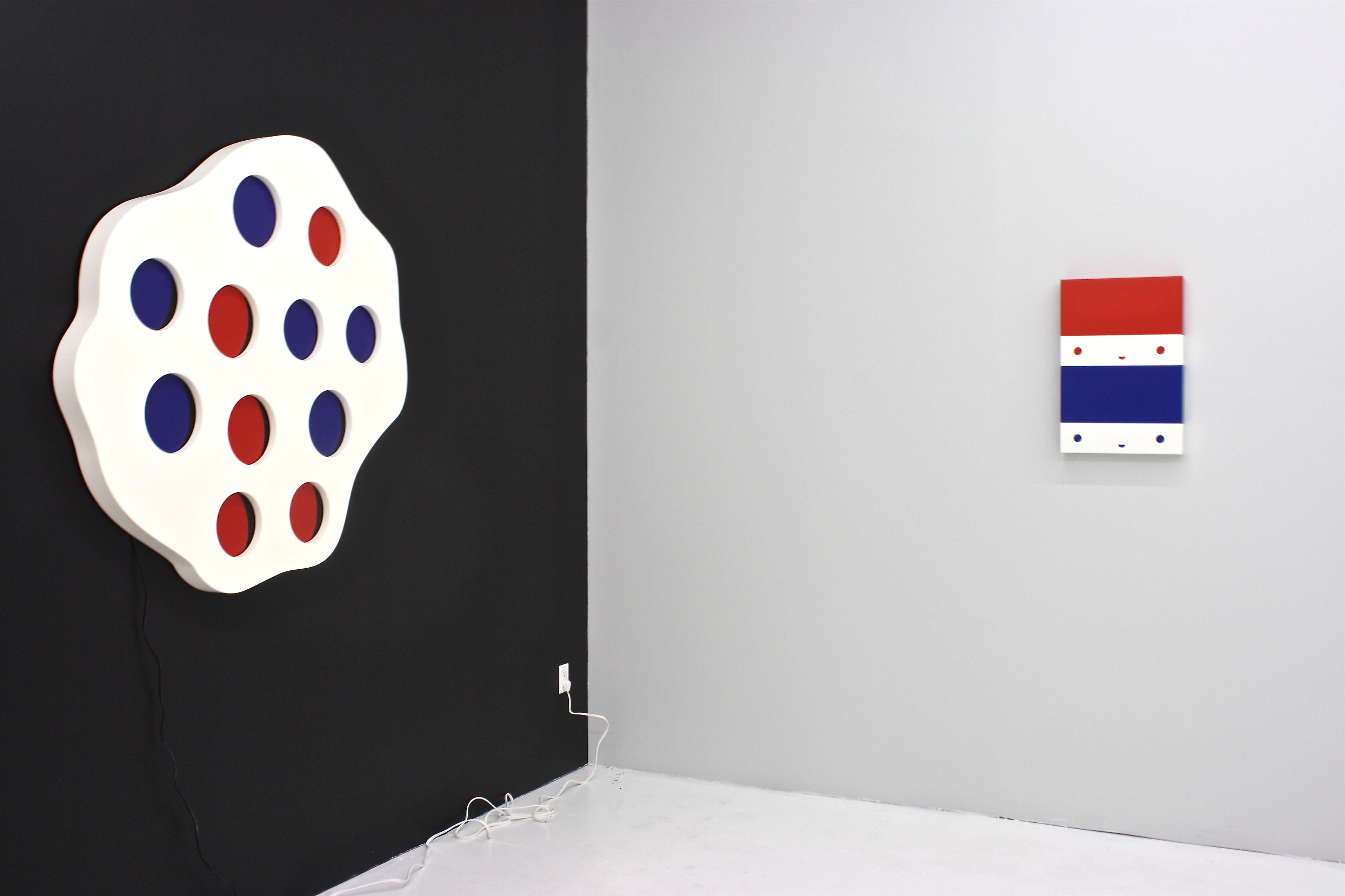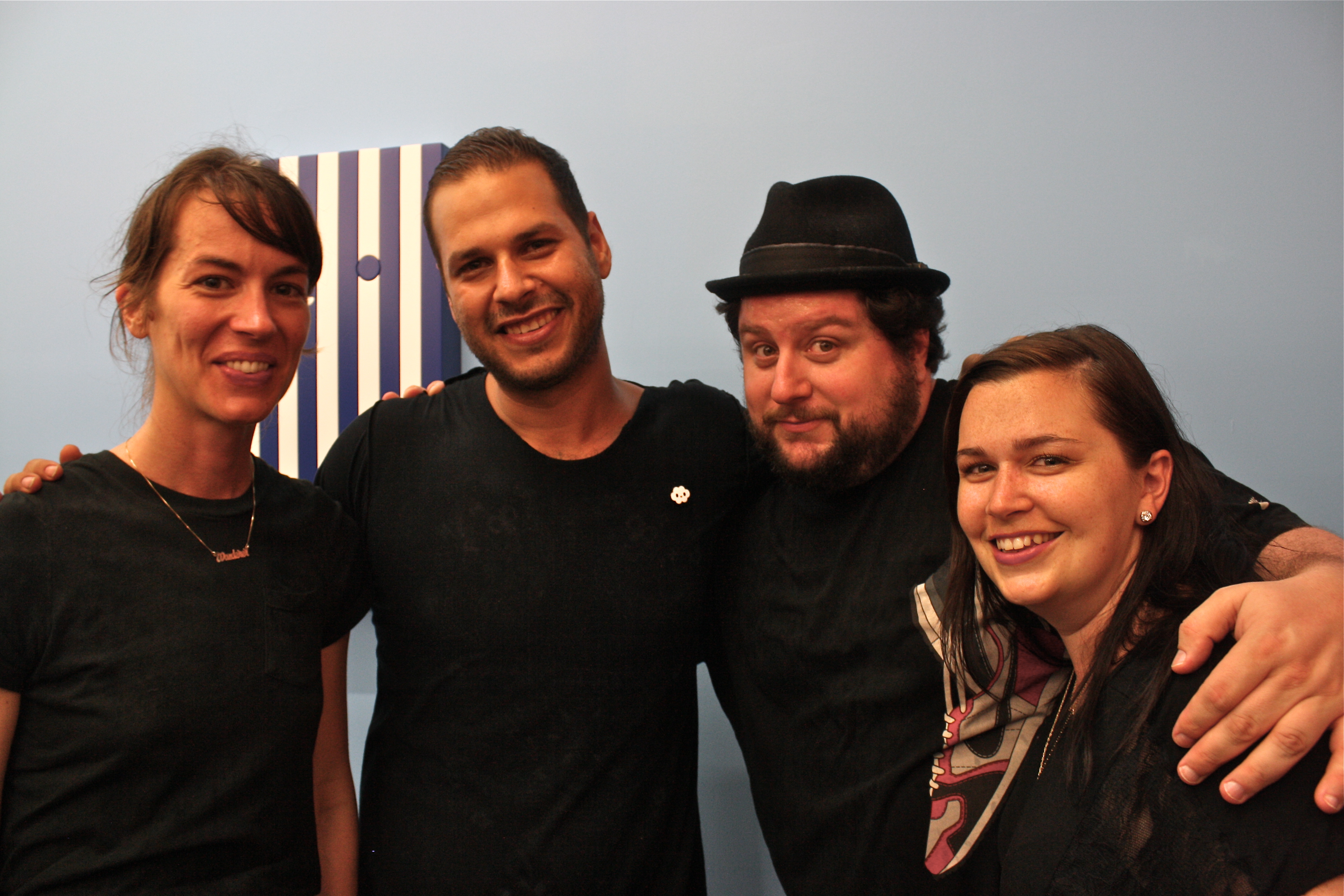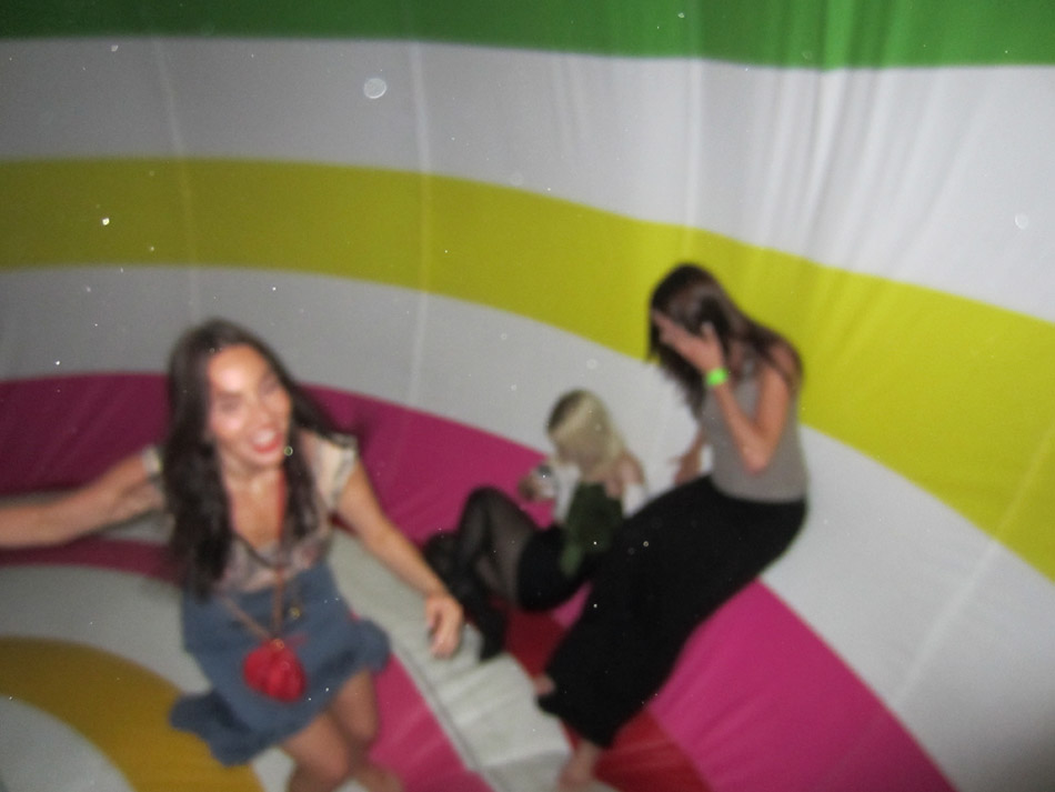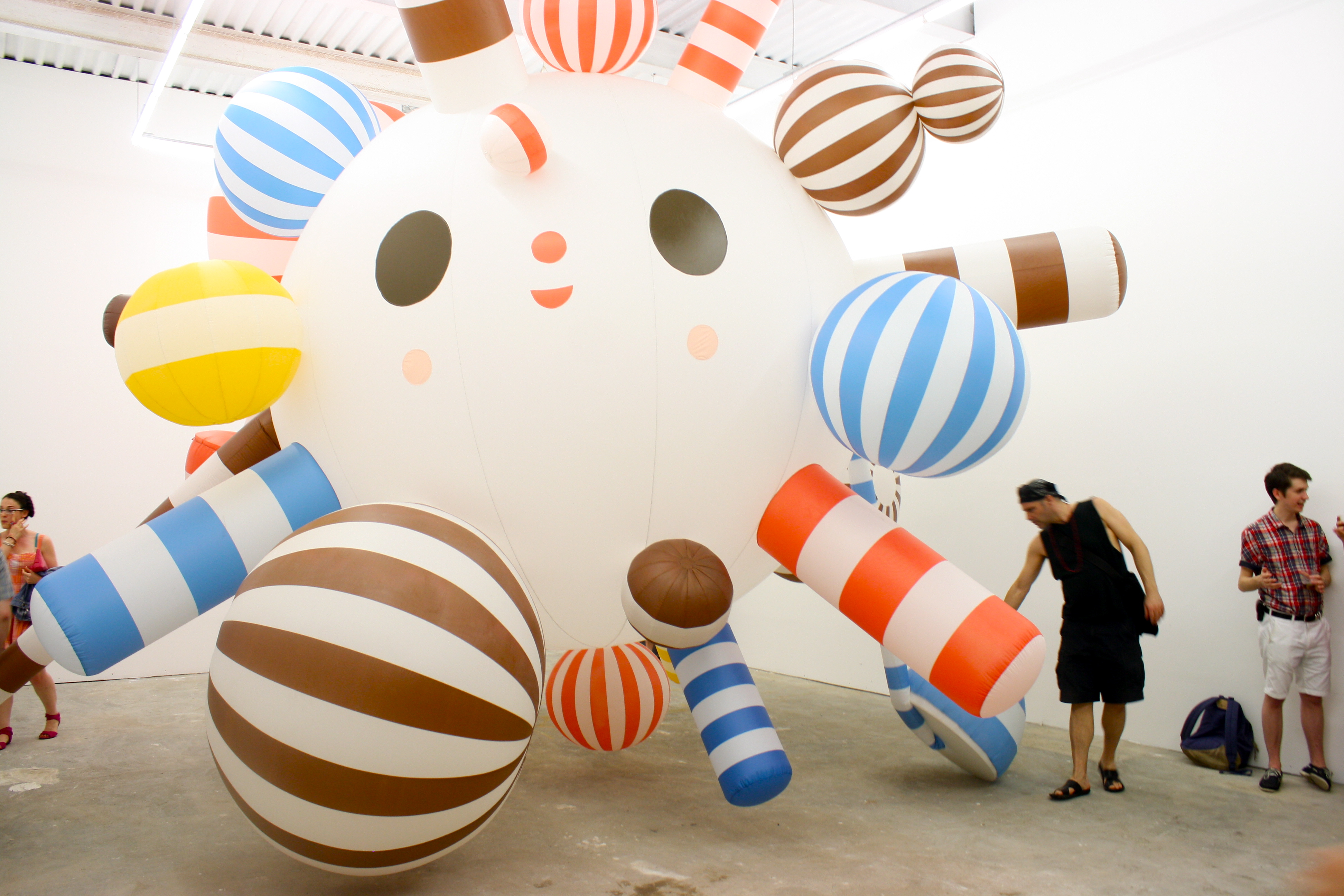 “Friends With You” was formed in 2002 by computer animator Sam Borkon and designer Arturo Sandoval III with help from Melody Lisman,  the booking agent for acclaimed trumpet maestro Arturo Sandoval Sr (Arturo’s father). Dissatisfied with the banality of computer design, Borkon and Sandoval turned their focus towards hands-on production and innovation. “Because computer art is like cooking in a microwave now, there’s a trend toward doing stuff by hand” explained Arturo Sandoval in an interview with Miami New Times, in 2003, when the group was still in it’s infancy. Since then Friends With You has created installations at MOCA and the Scope Art Fair at Basel Miami. When Friends With You was invited to design Scope’s VIP lounge, they decided to add a sense of lightheartedness to the fair in order to diffuse the sense of pessimism inflicted by the economy. The installation, entitled “Fun House” included a restaurant, bar, a t-shirt stand and not to mention a huge bounce house.
