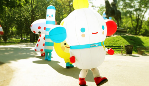 Miami – based art collective “Friends With You” will open their first exhibition “:)” in New York tonight at The Hole.  Friends With You create work in a variety of mediums including sculpture, animation, publishing and performance art.  The collective is commercially successful as well, creating advertisements for companies such as Target and Match.com and additionally create highly prized limited edition toys and objects. The show will take place in The Hole’s sizable new gallery space on 312 Bowery (corner of Bleeker) which has yet to be opened to the public. To celebrate the newest 10-block addition to the Highline, Friends With You have also taken over the raised park on the West side, filling the area with their signature larger-than-life cartoon figures. The installation, entitled “Rainbow City”, is fully interactive and includes a pop-up shop where a new line of toys will be sold.