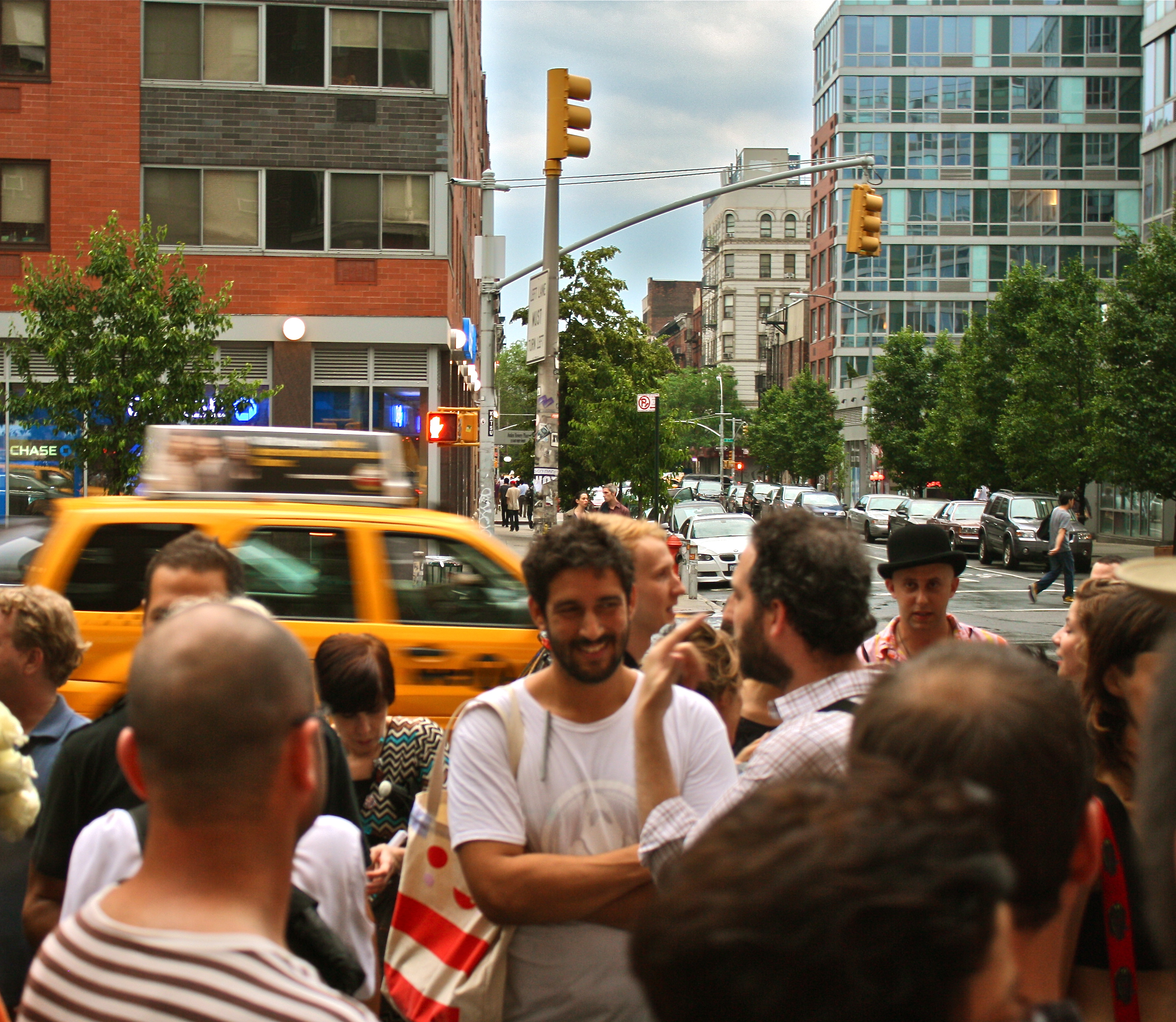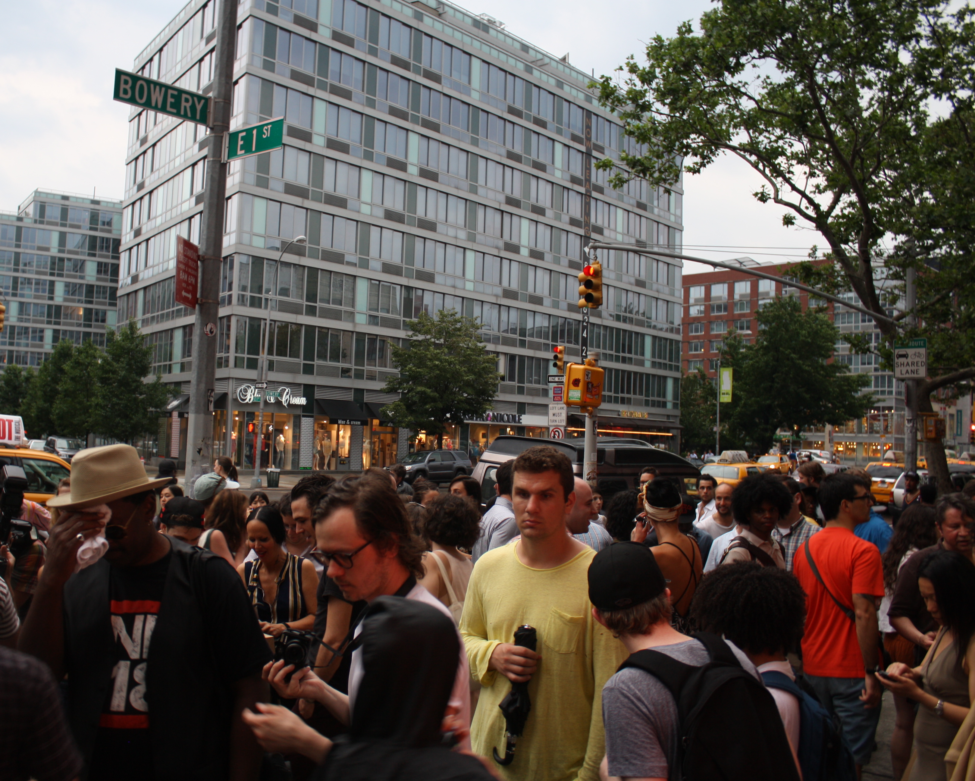 A view of the enormous crowd outside the Hole on the Bowery