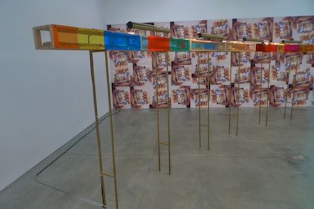 Luhring Augustine Gallery is currently showing I Had A Vision, a grouping of works by Martin Kippenberger. Together forming a kitschy carnival of mixed media installation and wall pieces, the works selected were earlier exhibited in various exhibitions dating to the early 1990s. The title of the exhibition is pulled from the catalogue accompanying Kippenberger’s 1991 show at SF MoMA. The “vision” in question is apparent in the gallery presentation, as Kippenberger consistently reappropriates objects and re-envisions their utilitarian intent.