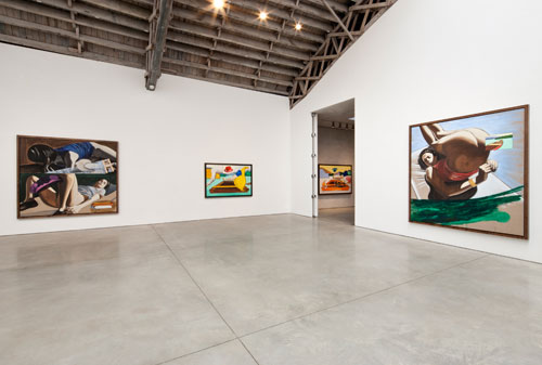 Vibrant colors, rich brushstrokes and the sheer size of Salle’s paintings imbue these works with energy and life, yet their subject matter reflects an emotional heaviness. Emptiness, stillness, and struggle provide for an intimate and sensitive experience.