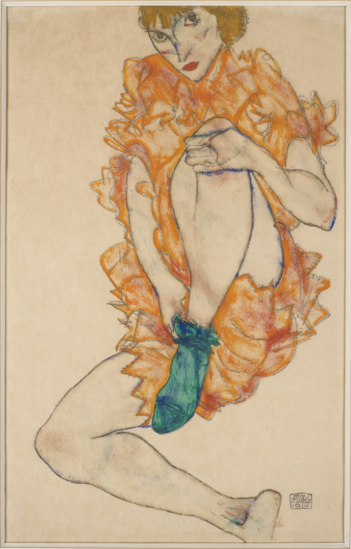 Egon Schiele, Standing Nude with Orange Stockings (1914), via Richard Nagy Gallery