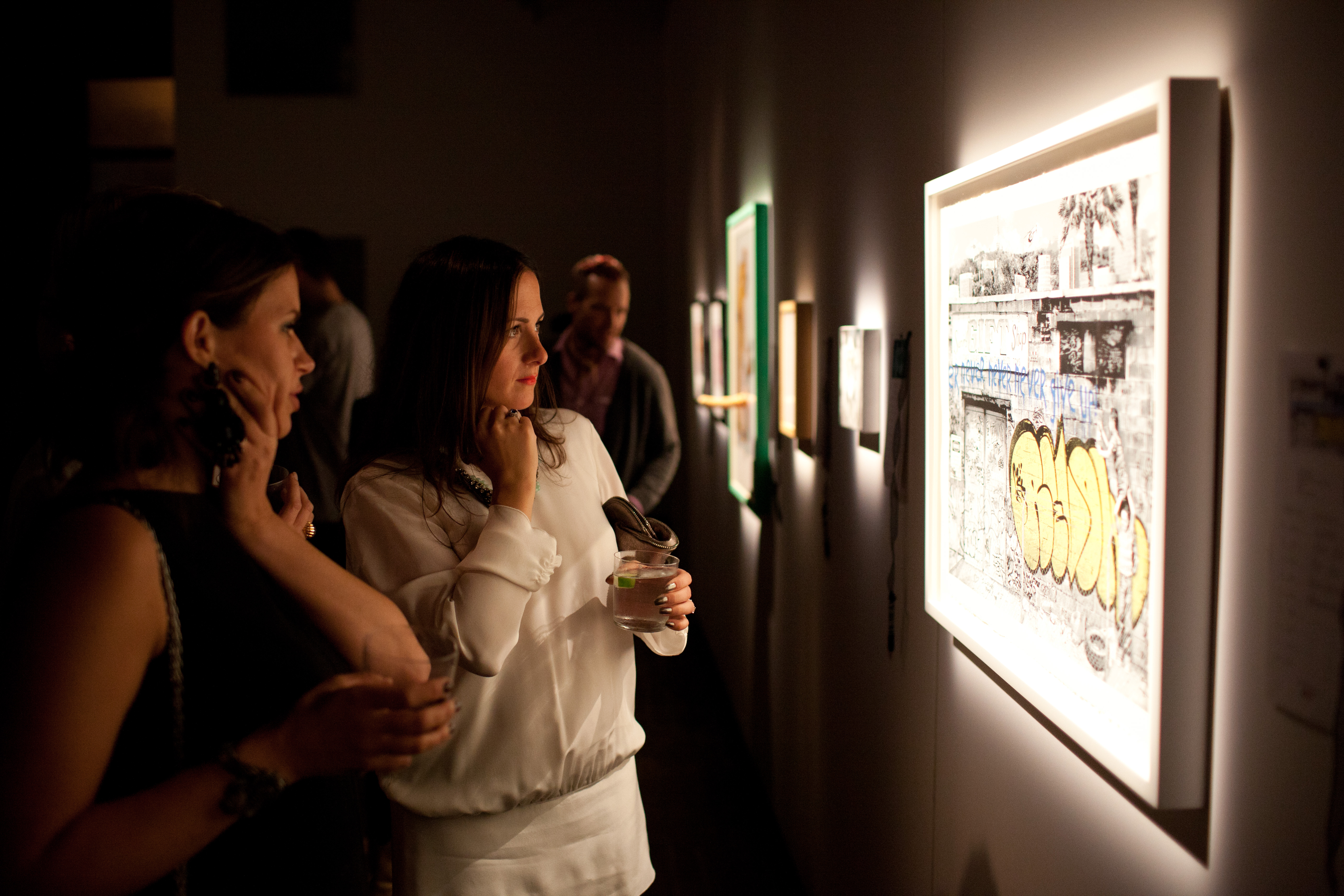 Art Observed was on site again this year for the RxArt + Chanel Beauté 11th Annual PARTY Benefit. Imbibing works by contemporary artists such as Nate Lowman (who’s Reverse Snowman Holding His Own Head was the highest going piece, at $24,000) and Dan Colen, Miranda July, and Yoko Ono, guests bid via silent auction, the proceeds going toward a good cause. According to their website, “RxArt is a non-profit organization dedicated to placing original fine art in patient, procedure and examination rooms of healthcare facilities. Our mission is to improve otherwise sterile environments through contemporary art, promote healing, and inspire hope in patients, families and staff.” Held at the Highline Stages in Chelsea, party-goers included artists KAWS, Terry Richardson, Aurel Schmidt, and José Parlá, among other celebrities and organizers such as Bill Powers and Jen Brill.