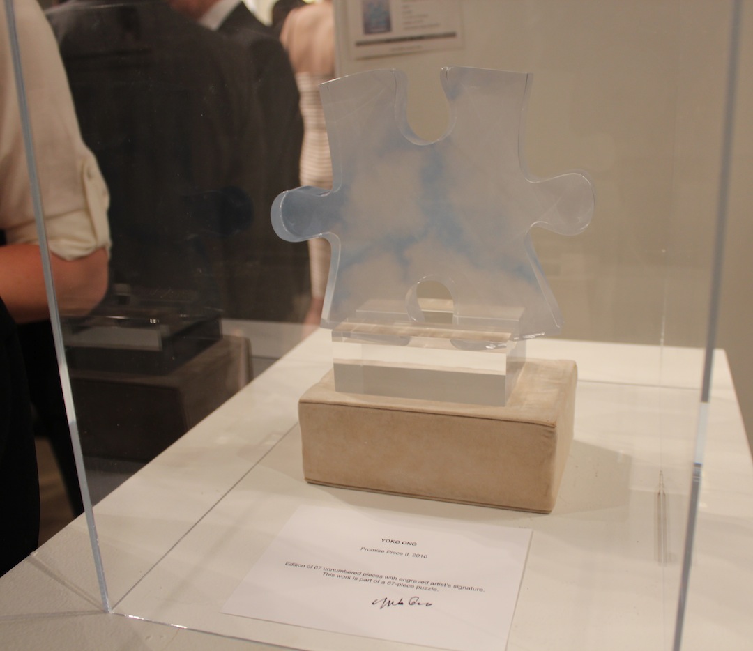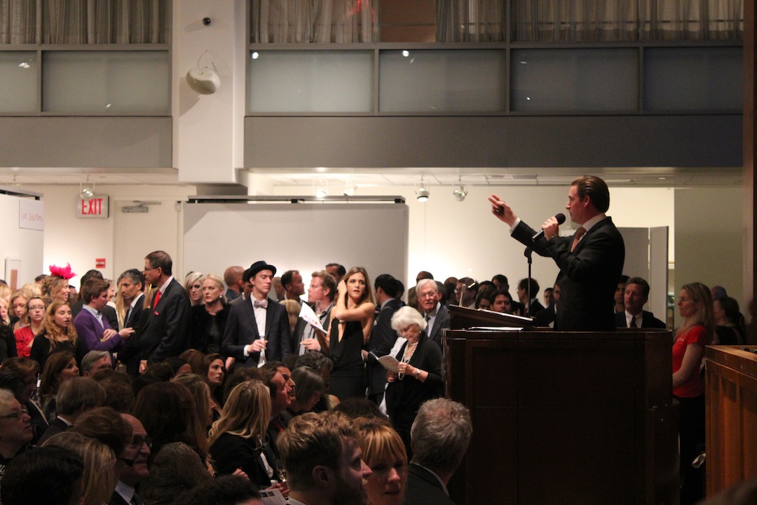 Monday night on the seventh floor of Sotheby’s, art enthusiasts took in a variety of works—many of them nudes or variations thereof—at the 20th annual Take Home a Nude benefit by the New York Academy of Art. A 6 o’clock cocktail hour loosened up bidders for the concurrent silent auction, closing at 8:30 with a live auction, followed by dinner downstairs at 9:00. The night honored artist Jenny Saville and critic John Richardson, with artists Jeff Koons (in attendance further down town at the National Arts Awards) and Nan Goldin up for bid at the live auction, while artist Dustin Yellin—whose work caught the eye of Mary-Kate Olsen—fetched the highest bid at the silent auction at $9,500. However, Alyssa Monk’s Soft went to live auction after fierce bidding during the silent auction, fetching a final $12,000, and the evening’s overall highest piece was Joseph Kosuth‘s ‘Texts (Waiting for-) for Nothing’, Samuel Beckett, in play, 2011 at $37,500.