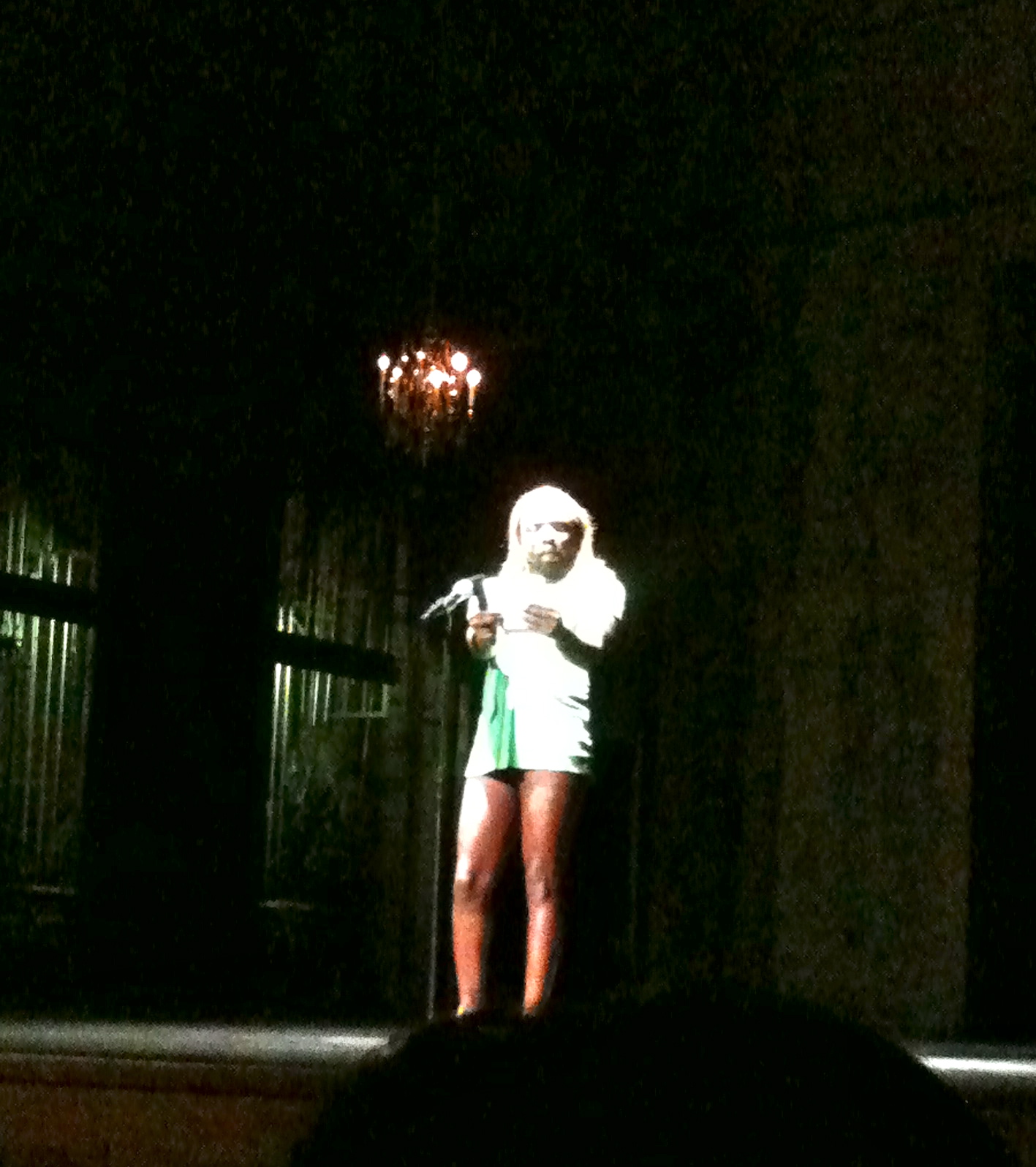 “Men” was the final section of the work, highlighting a handful of male performers reciting Tom’s evocative final monologue from The Glass Menagerie. Each actor took the stage with a different motivation—some nostalgic, some mocking, some stoic, artist Kalup Linzy in drag—every performance was somehow a product of the complex melancholy that concludes Williams’ play. In a theatrical power shift, Franco and Nakadate were no longer the directors, but served at the disposal of the male performers. This was most apparent with the third male performer, Ryan McNamara, who requested that Franco and Nakadate blow on his hair to create a wind-tunnel effect while creating what he referred to as “stoic tears,” produced by Franco spitting onto his face.
