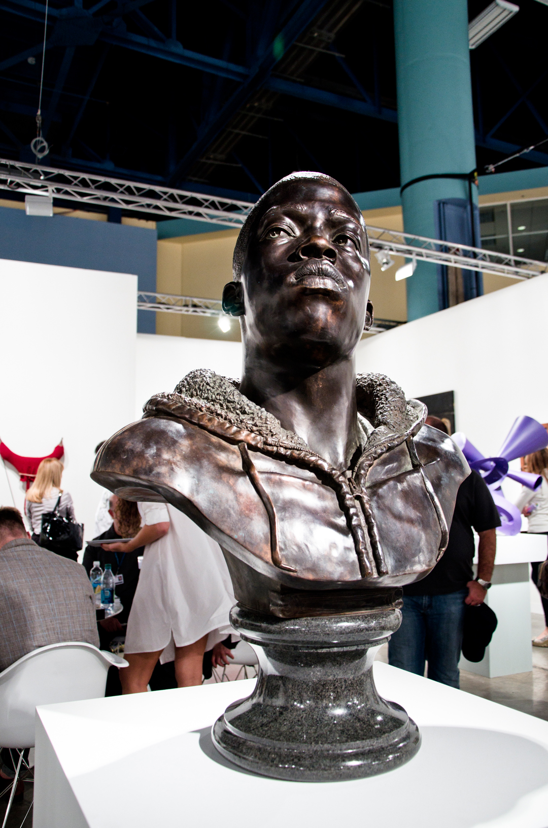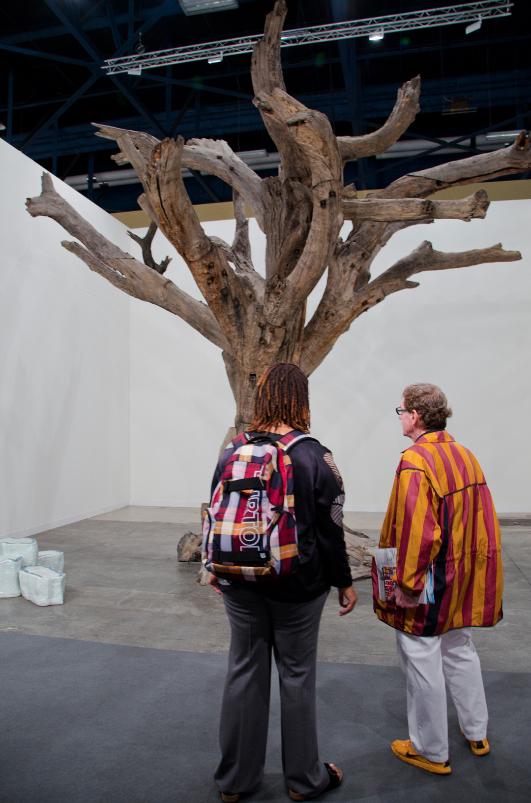 David Zwirner sold well across the board, from Minimalist works to much fresher ones, moving Flavins and McCrackens, and entirely selling out Carol Bove. The large Neo Rauch painting remained unspoken for late Saturday afternoon despite the artist’s concurrent show in New York. According to the representative, the gallery’s art fair presence and actual exhibitions are two different programs with little concrete influence on each other. Rauch’s aeruginous bronze sculpture, Die Jägerin, currently showing at Zwirner in New York, had another one of its three editions showing across the convention center at Galeria Elgen + Art on reserve for $850,000.