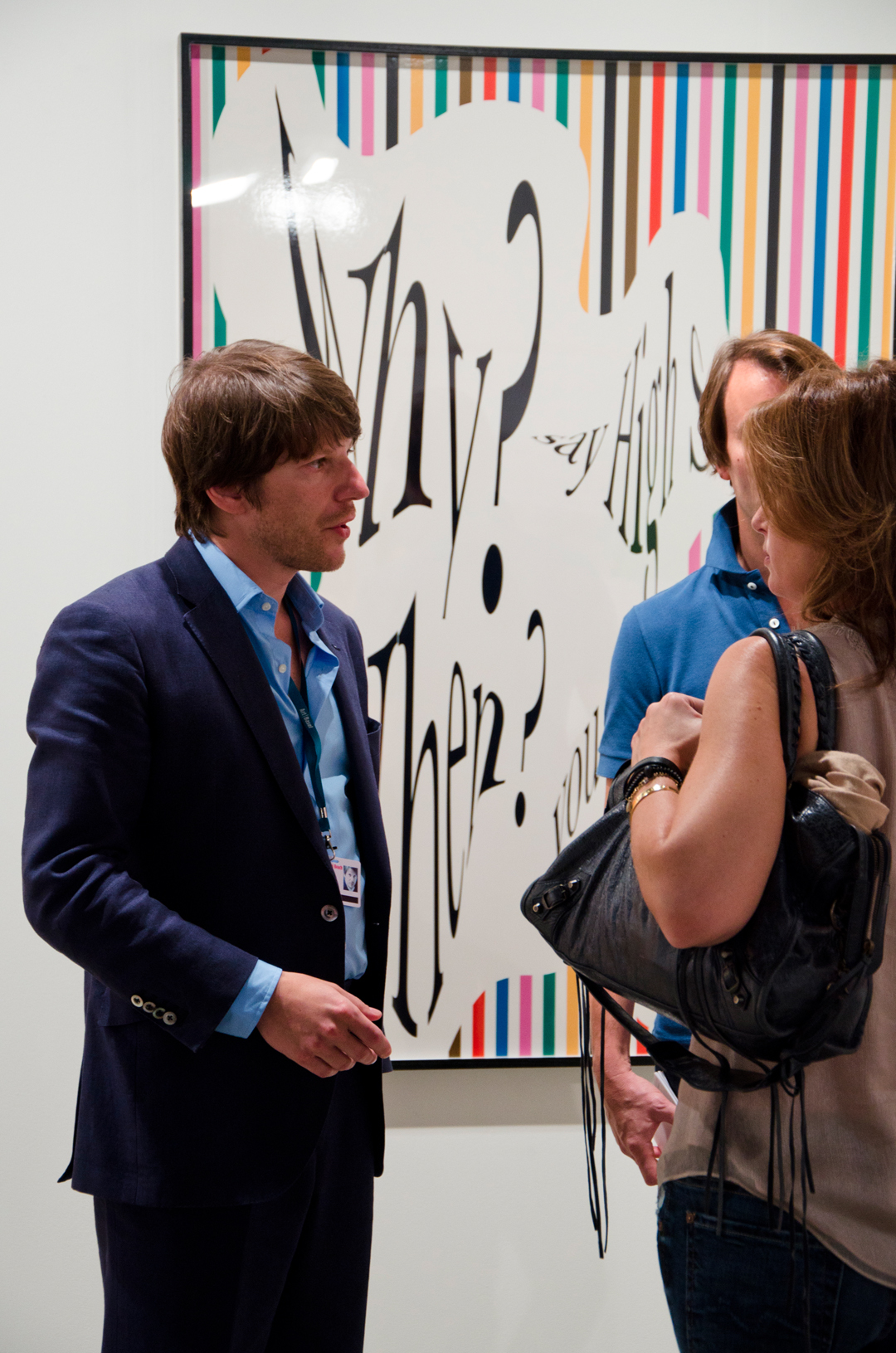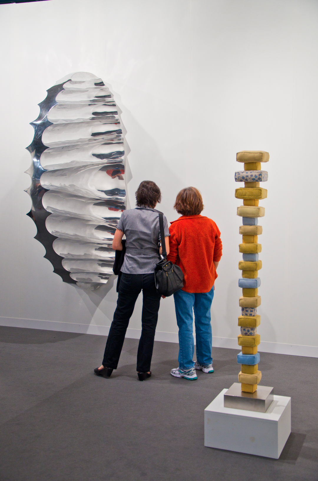 While sales typically come in waves strongest toward the beginning of the fair—as more sight-seeing families roll in toward Saturday—galleries commented on the consistency of sales throughout the week this year. A representative at Helly Nahmad Gallery stated, “The market is very solid,” and Joni Weyl of Gemini G.E.L. was pleased by the “healthy spontaneity of purchase.” Both old and new clients arrived at the fair, informed and seemingly tired of not buying. Works in all mediums sold well, be it Tracy Emin‘s neon light sculpture (which went to Sean Combs/P. Diddy, retailing at £60,000), a Murakami painting for $600,000 at Galerie Perrotin, as well as older works like Picassos, Calders, or Basquiats at Helly Nahmad.