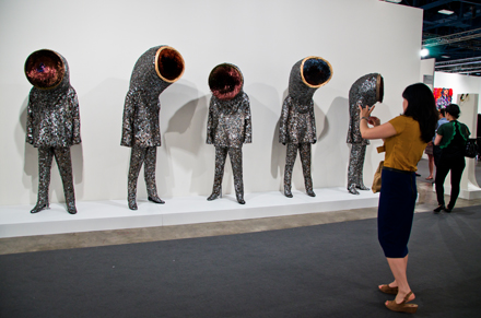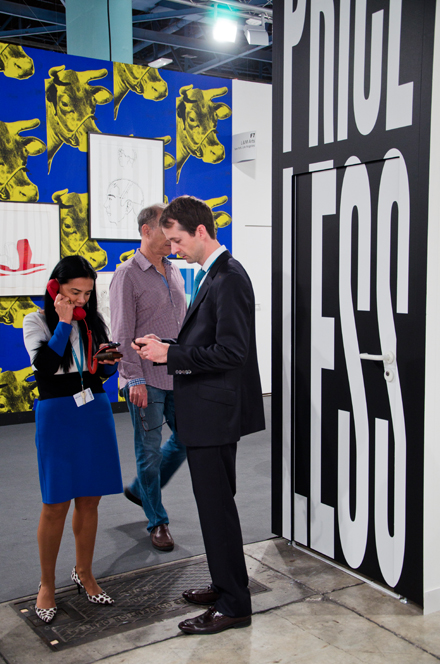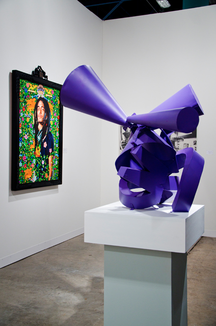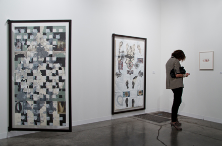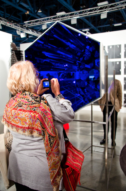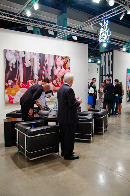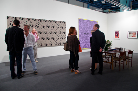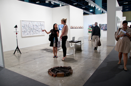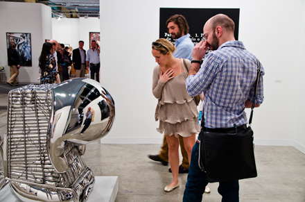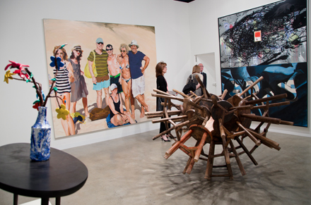 International collectors and art enthusiasts filled the Miami Beach Convention Center for the Wednesday preview of Art Basel Miami Beach 2011. While the maze of gallery booths could seem overwhelming, buyers were able to navigate through for a solid day of sales and works placed on reserve. Larger galleries such as Gagosian, David Zwirner, and Sprüth Magers sold several works and editions thereof. Speaking with Neil Wenman of Hauser & Wirth, “We’ve had a great response on the opening day. In particular for works by Thomas Houseago, Rashid Johnson, Paul McCarthy, Matthew Day Jackson, Richard Jackson—all works sold and all available editions.” Jenny Holzer’s new paintings at Sprüth Magers sold for upwards of $300,000, as well as Condos and Krugers at the booth. Lesser-known galleries were pleased to gain the exposure the fair offers; if not selling right away, interest was high and therefore also prospects for the remainder of the fair. Gallery Arratia Beer said the crowd was very engaged and informed, also saying, “The fair feels very international. It’s also good to see young internationals here too.” The newer Latin American presence was reportedly strong, both exhibiting and buying, as expected in Miami as opposed to the Frieze or FIAC fairs across the Atlantic earlier this year. Celebrities on hand included Julian Schnable, Eli Broad, Brett Rattner, Naomi Campbell, and Sean Combs/P. Diddy.