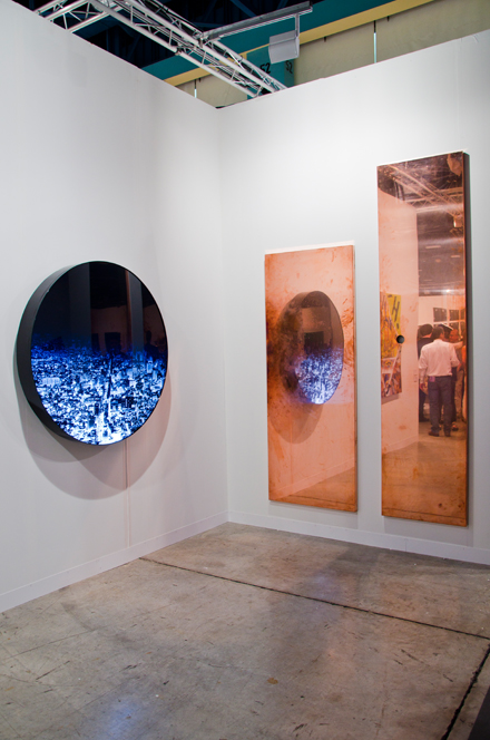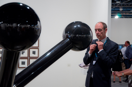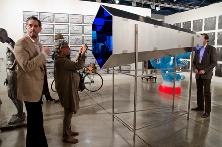 Allora & Calzadilla, Umbrella and Bell (2011), front; Anish Kapoor, Untitled (2011), behind. At Lisson Gallery, booth J1. All photos on site for Art Observed by Caroline Claisse.