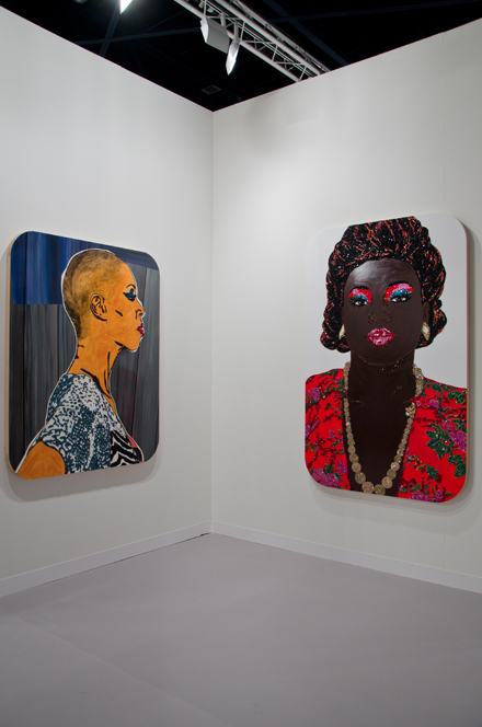 Kehinde Wiley Mizrah, The World Stage Israel (2011); Thomas Kiesewetter, Untitled (Royal Purple) (2011). At Roberts & Tilton, booth A8
