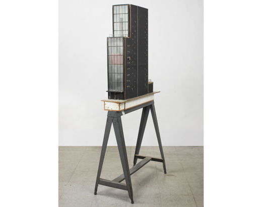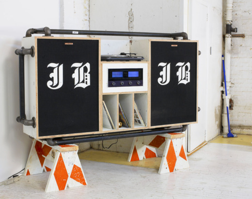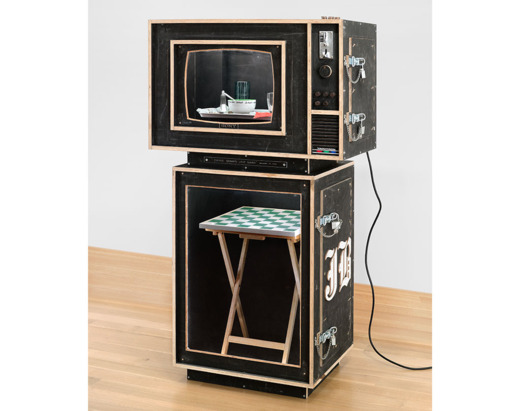 The press release for Work, Tom Sachs’ current show at Sperone Westwater Gallery begins with quotes from both himself and soul pioneer James Brown on the word itself. It’s a fitting introduction for Sachs, who has continually explored the nature of “work” in contemporary art through pop art tropes of “readymade” objects by emphasizing the handmade nature of the piece, or occasionally by simulating it, bringing dialogues on authorship and originality to the forefront. For this show, Sachs takes major cues from the Godfather of Soul, commonly nicknamed “The Hardest Working Man in Show Business,” enshrining Brown through his own worldly possessions. These repurposed artifacts range from sculptures of his hair dryer, replicas of his hair products, and a piece called James Brown’s Last Supper: a TV Dinner tray housed in a television cum road-case that blends Brown’s demise with the inescapable nature of his legacy.