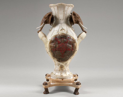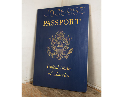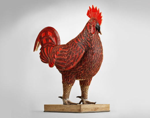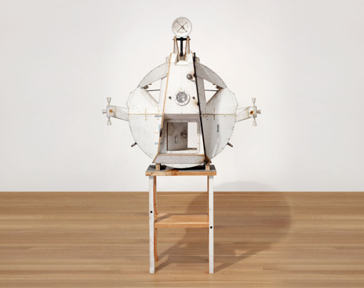 Other works on view include a number of “readymade” recreations in macro proportions, including an enormous passport, Scotch Tape dispensers, and Pop Art homages to Viagra and Duridium razor blades, noteworthy for their adornments with screws and pyrographic type. Sachs also is exhibiting a piece called Big Cock, a recreation of a Nigerian ceremonial rooster sculpture, but with a coin slot inserted for donations to ‘the chief.’ The show precludes a major interactive exhibition by Sachs, ASTRONAUTS TRAINING MANUAL; SPACE PROGRAM 2.0: MARS, which will be on view at the Park Avenue Armory this upcoming May.