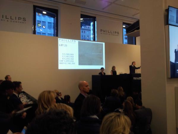 All things considered, Phillips de Pury enjoyed a sound Contemporary Art sale, replete with artist’s records achieving new heights. The sale had additional buoyancy attributed to the auctioneer’s sense of humor propelling the auction. At the very end—with Andreas Gursky‘s Prada II on the block and collectors saying farewell to one another—Simon remarked, “It is very dangerous to wave at your friends right now—if you wave, you may end up owning it.”