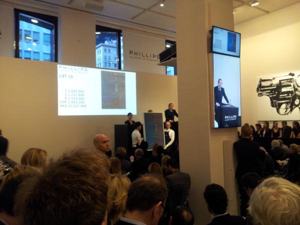Some lots did not share in the success, and were passed on all together. Namely Richard Prince‘s Emergency Nurse, which started at $1.7 million dollars and received no bidders. Surprisingly, Gerhard Richter‘s Abstratkes Bild 638-4 was passed on, despite Richter’s work being a front runner in the other auction houses. Nonetheless, Phillips still maintained a sell through rate of 80%, with 35 of the offered 44 lots selling.