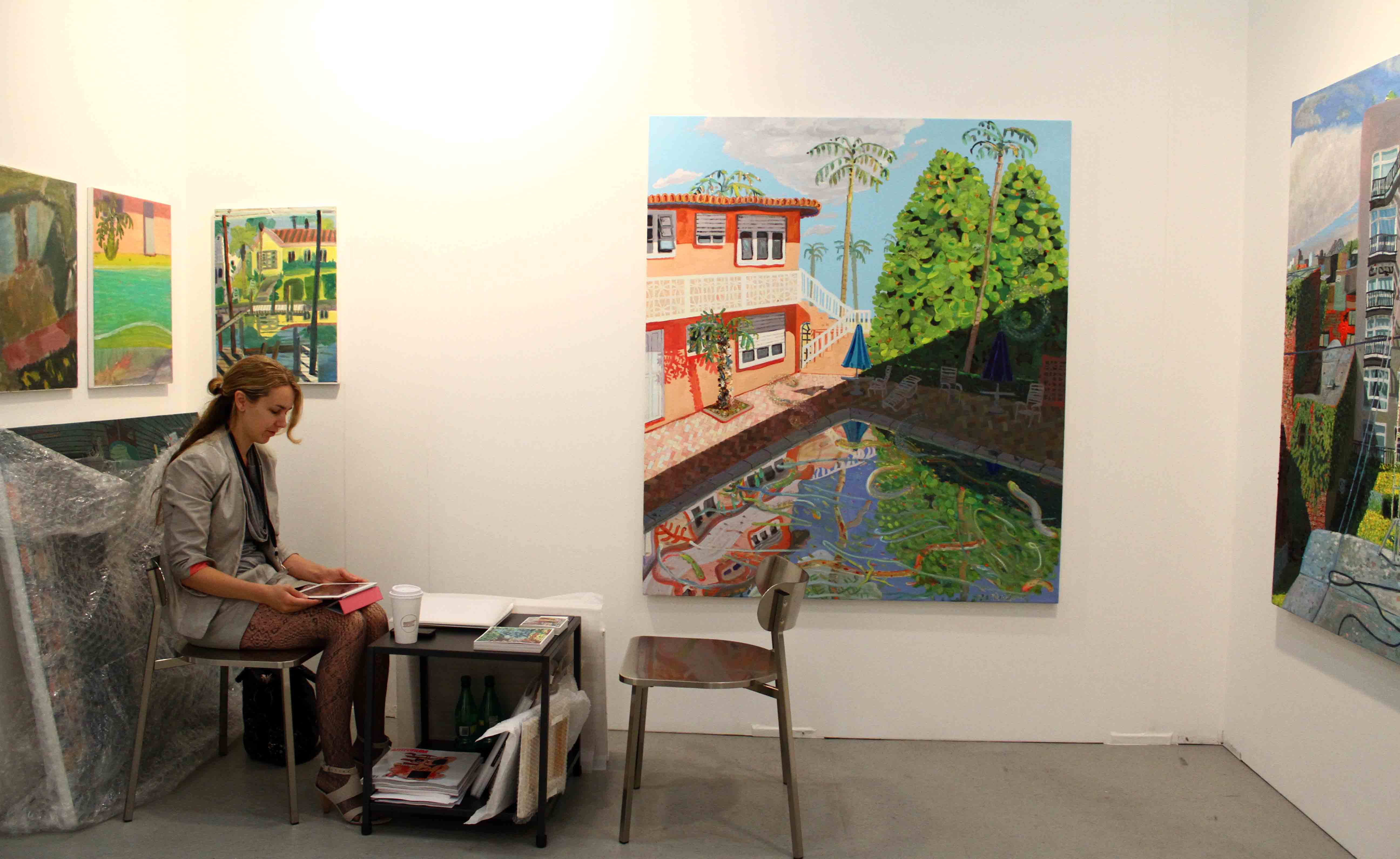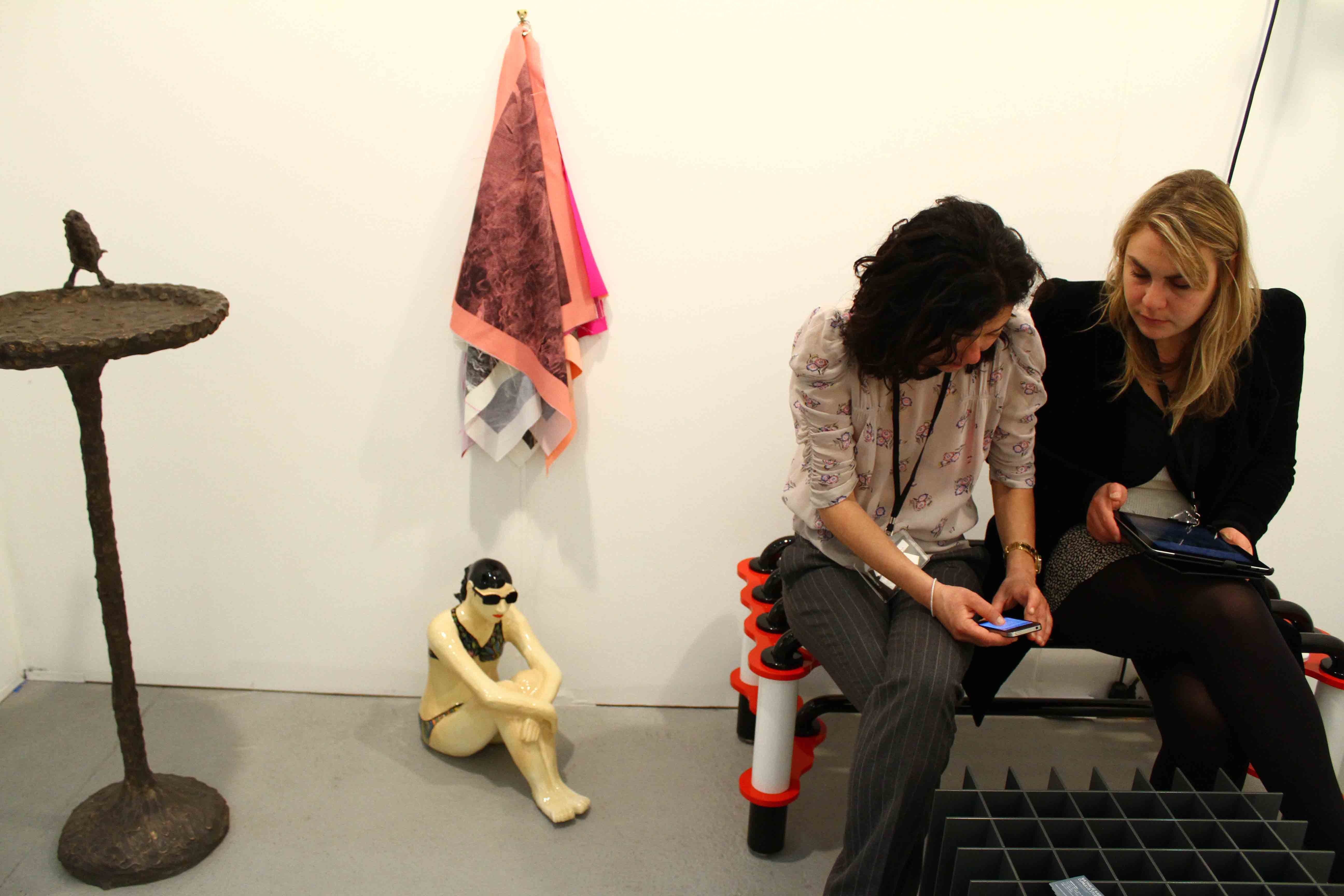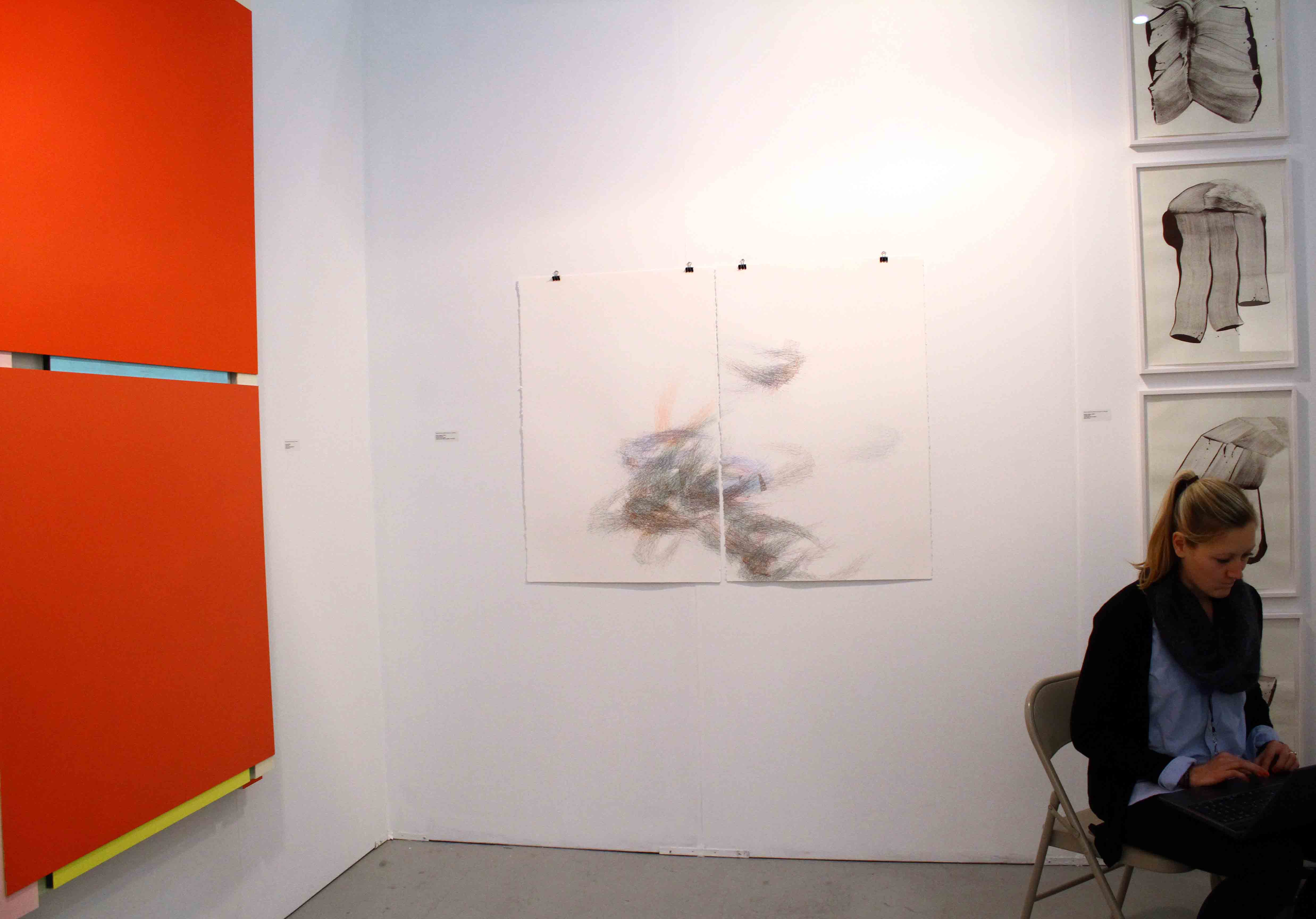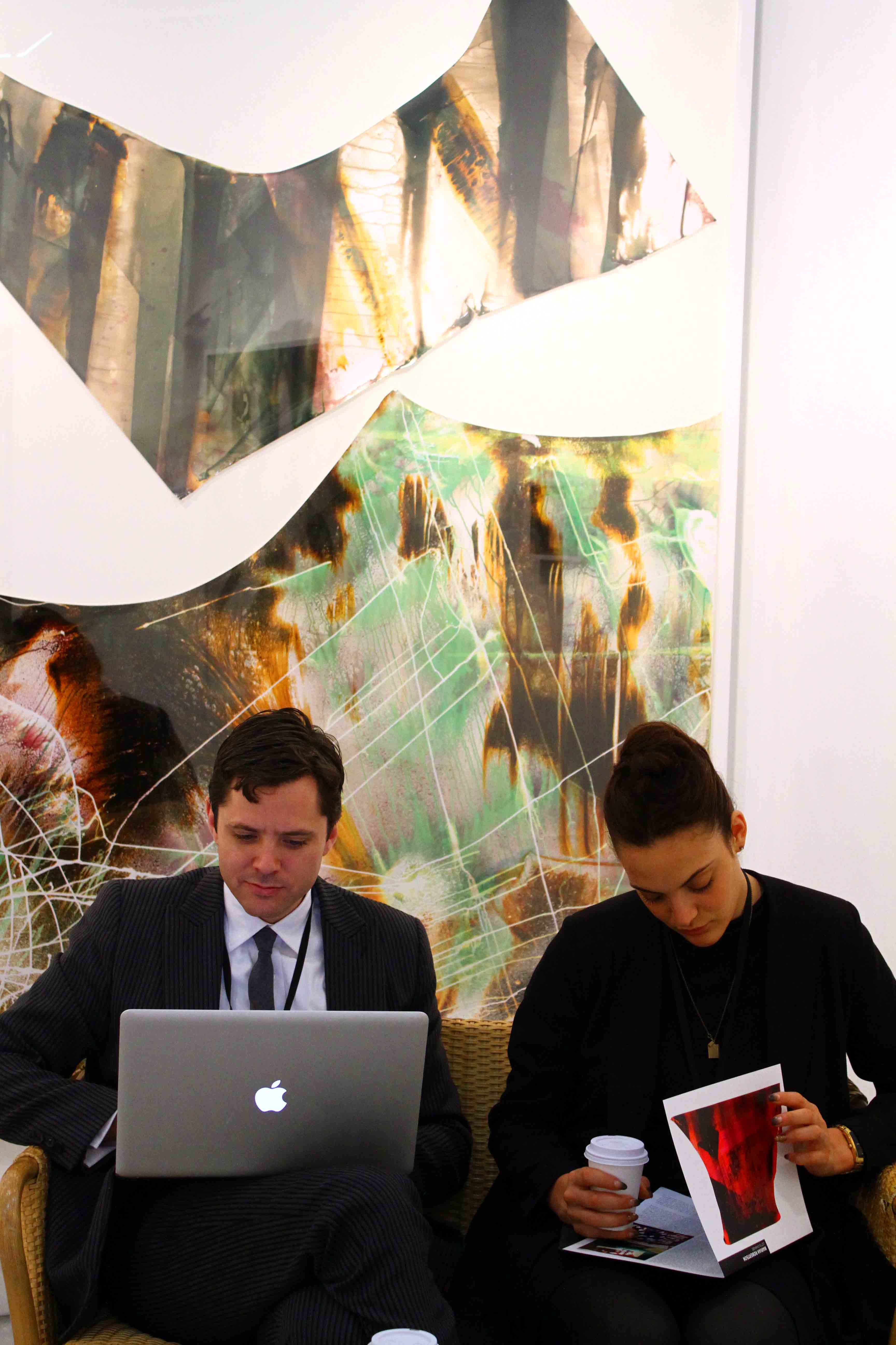 Though Friday’s inaugural proceedings had a mildly frantic feeling to them, everyone seemed to be enjoying themselves. Franklin Parrasch was showing work by Agnes Martin and Rita Ackermann and said about that fair that he “loved it.” Lisa Cooley had nearly her whole team out and thought the fair was “amazing,” and the Journal was hanging two big Leif Ritchies and agreed things were good. All in all 66 galleries from 11 countries were in attendance; a proper start indeed.
