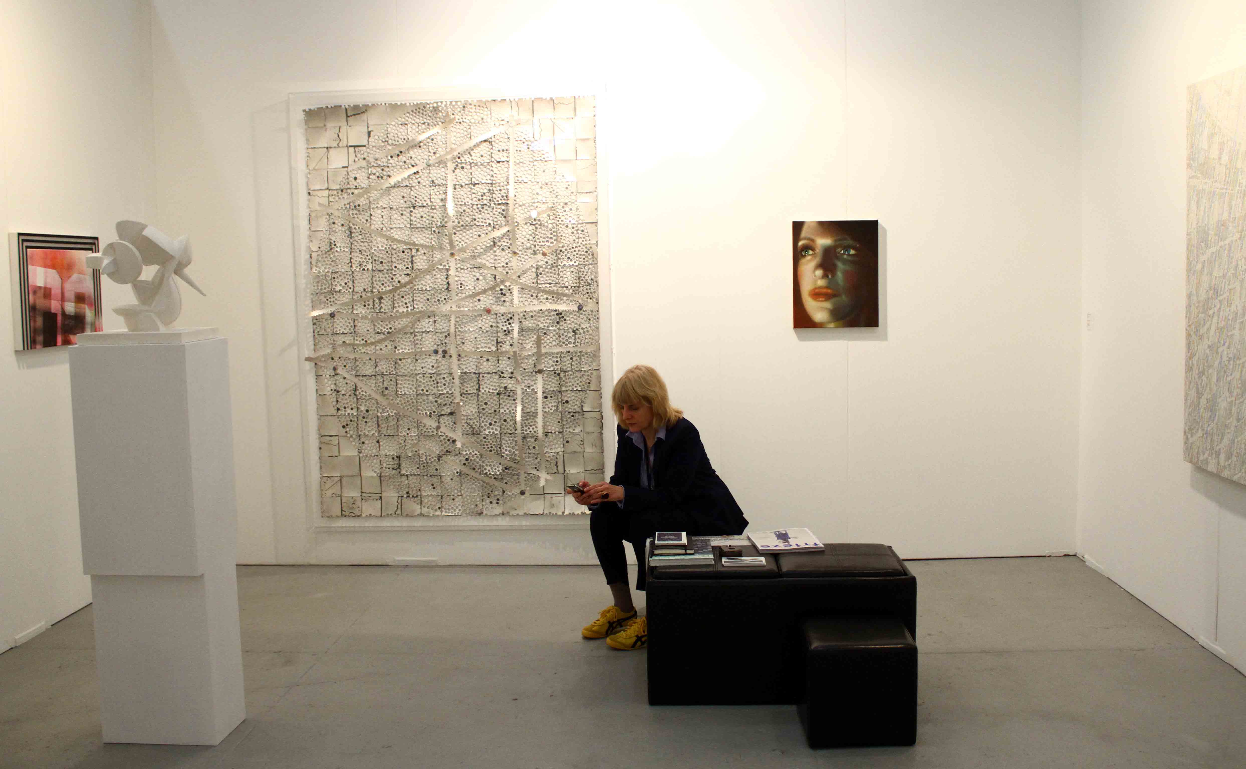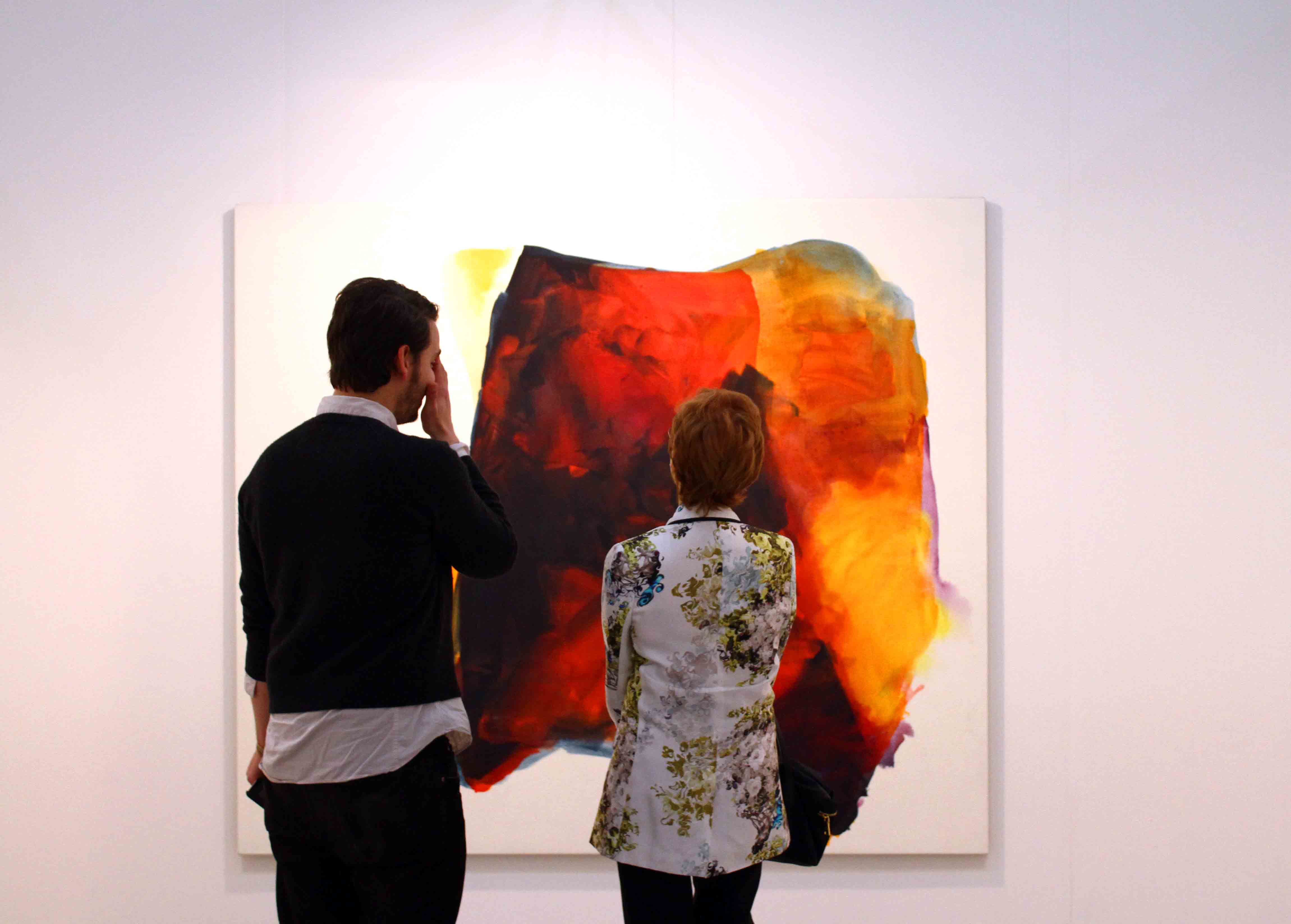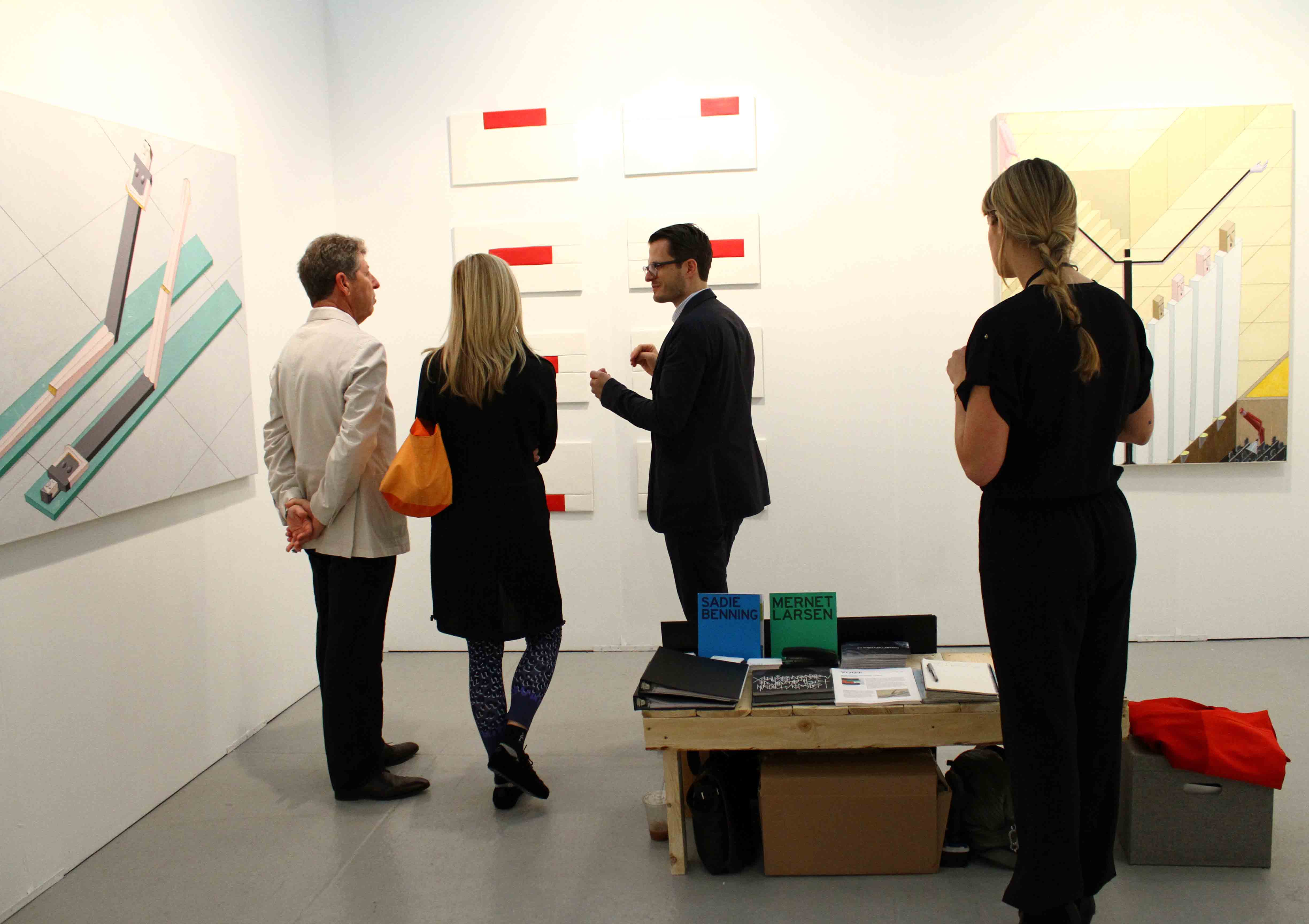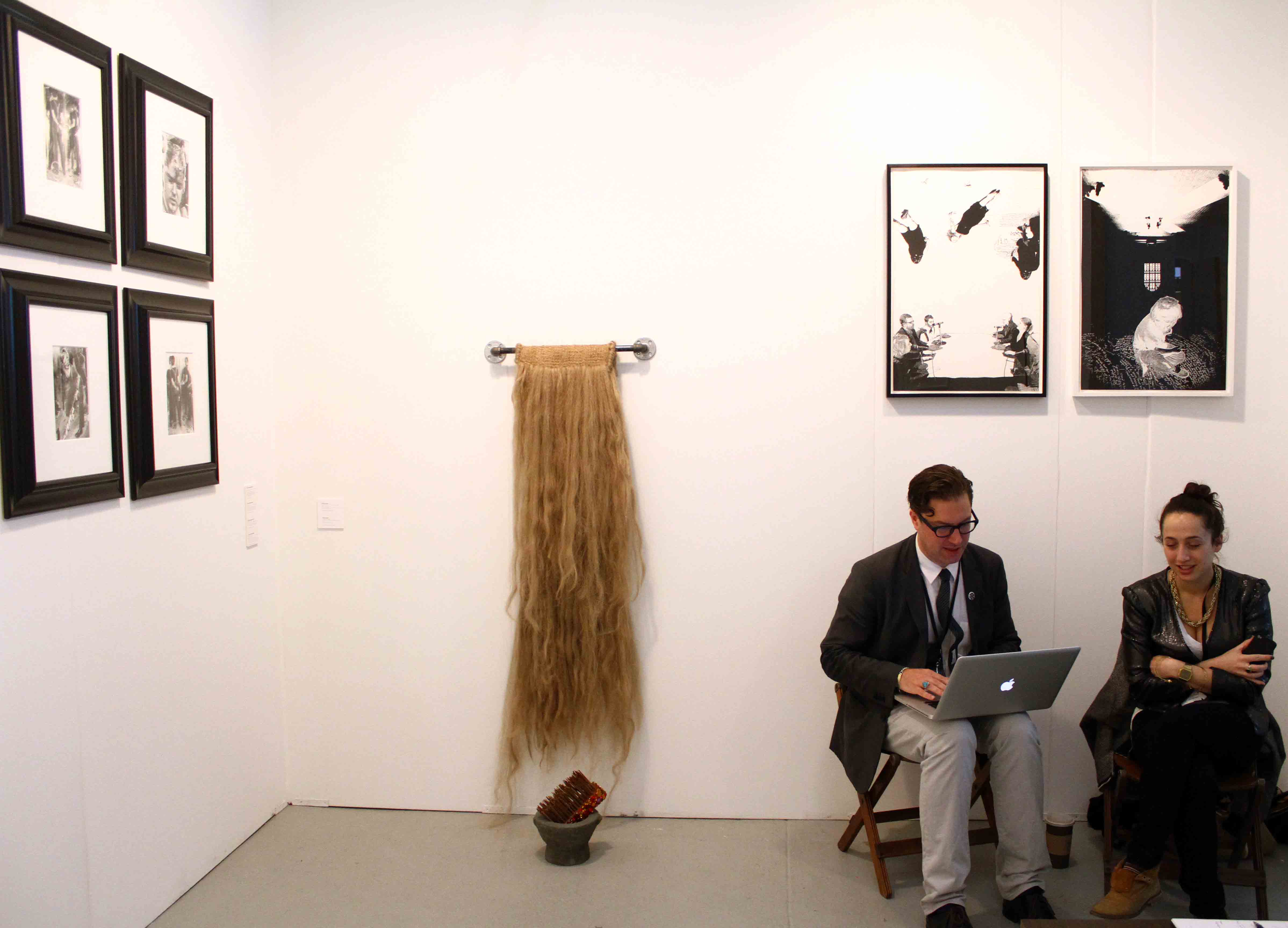 Though Friday’s inaugural proceedings had a mildly frantic feeling to them, everyone seemed to be enjoying themselves. Franklin Parrasch was showing work by Agnes Martin and Rita Ackermann and said about that fair that he “loved it.” Lisa Cooley had nearly her whole team out and thought the fair was “amazing,” and the Journal was hanging two big Leif Ritchies and agreed things were good. All in all 66 galleries from 11 countries were in attendance; a proper start indeed.