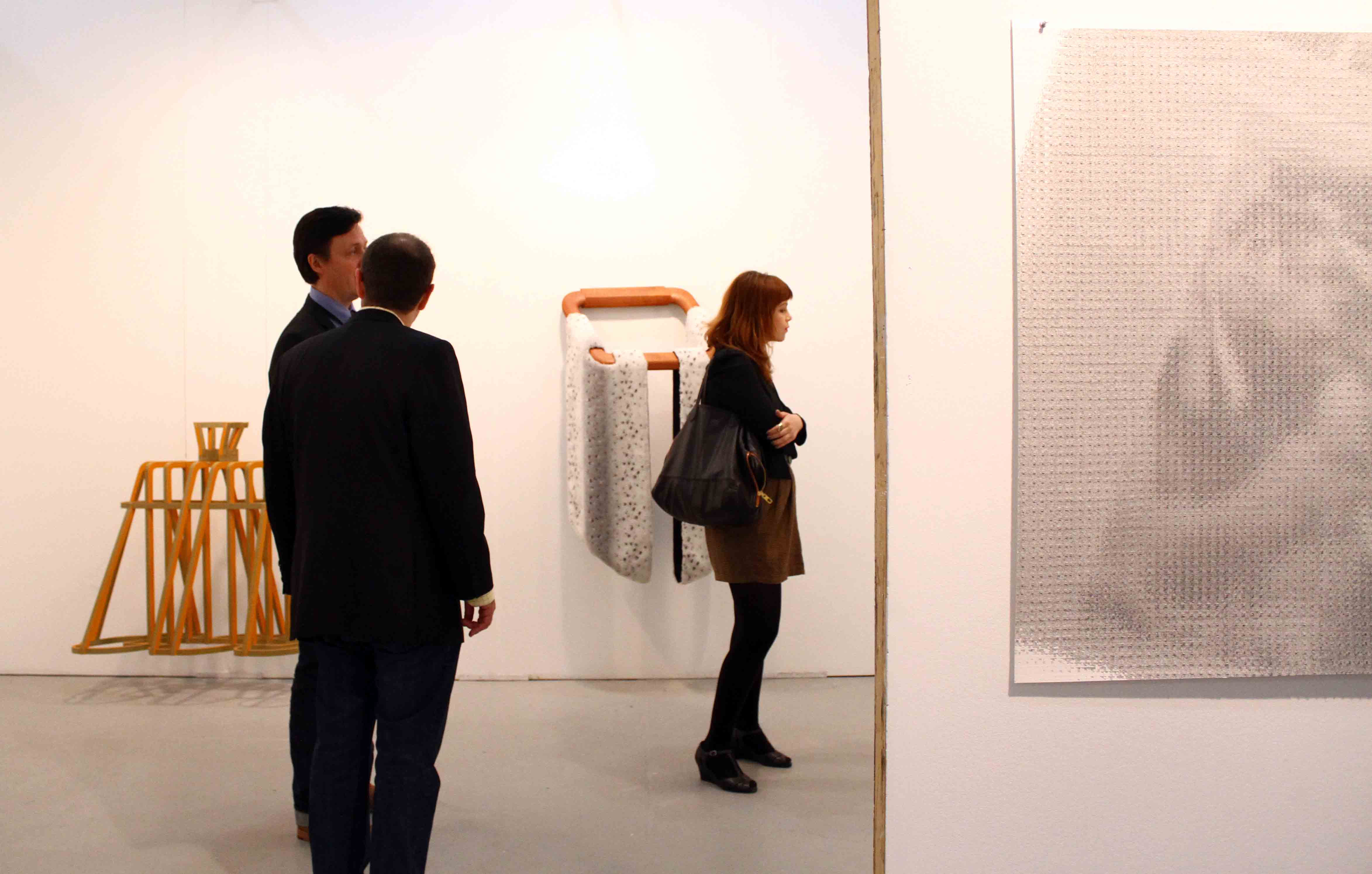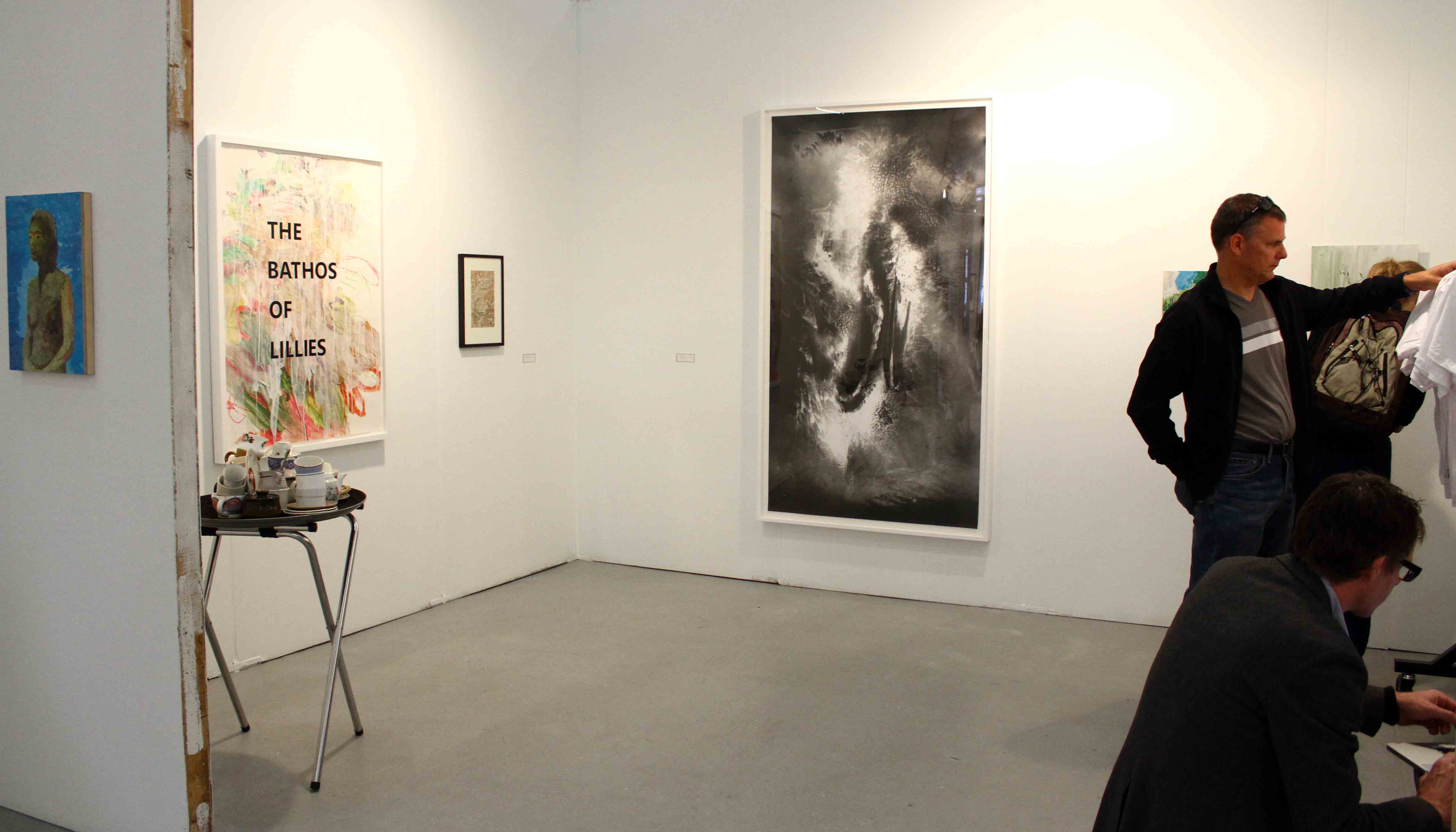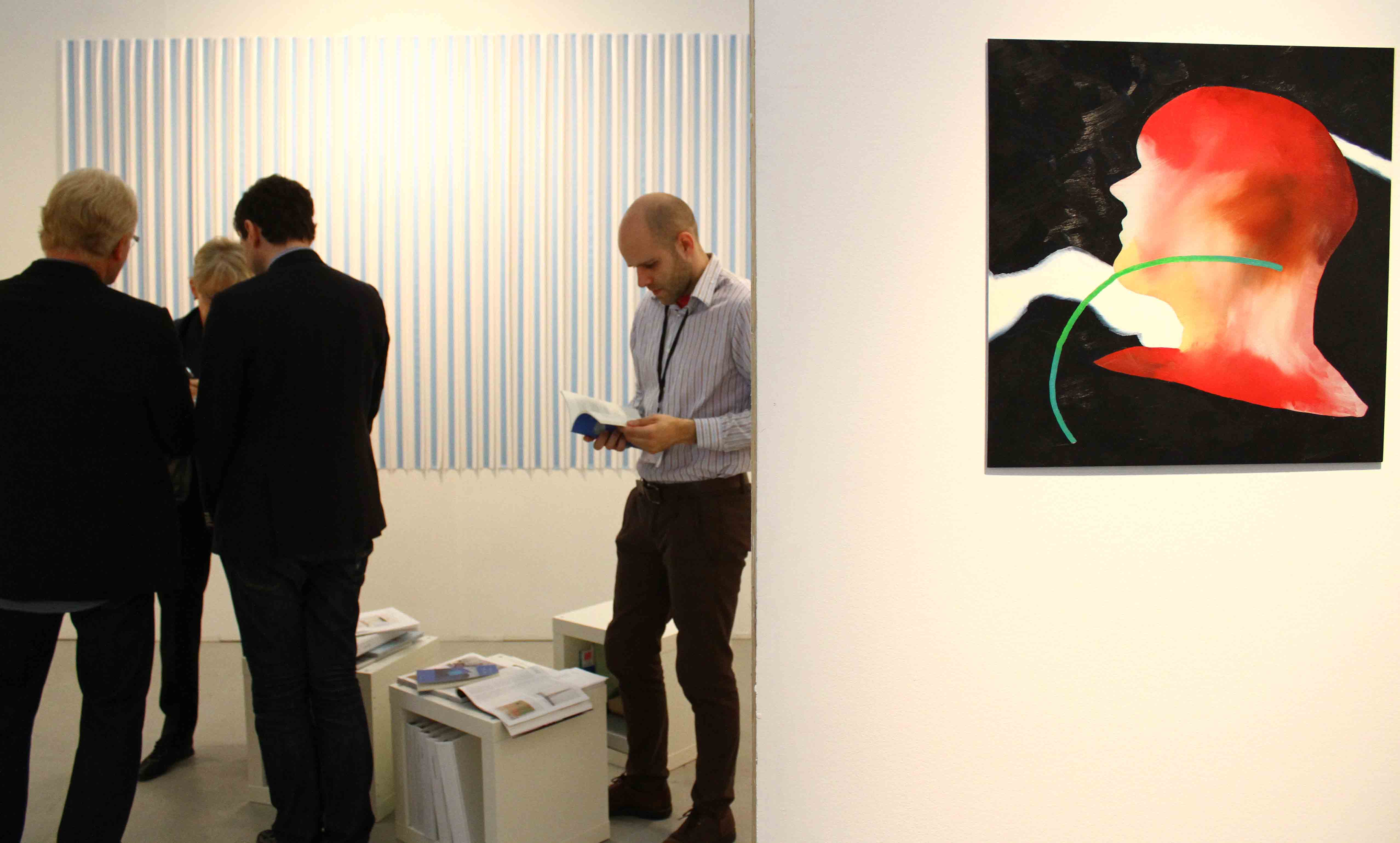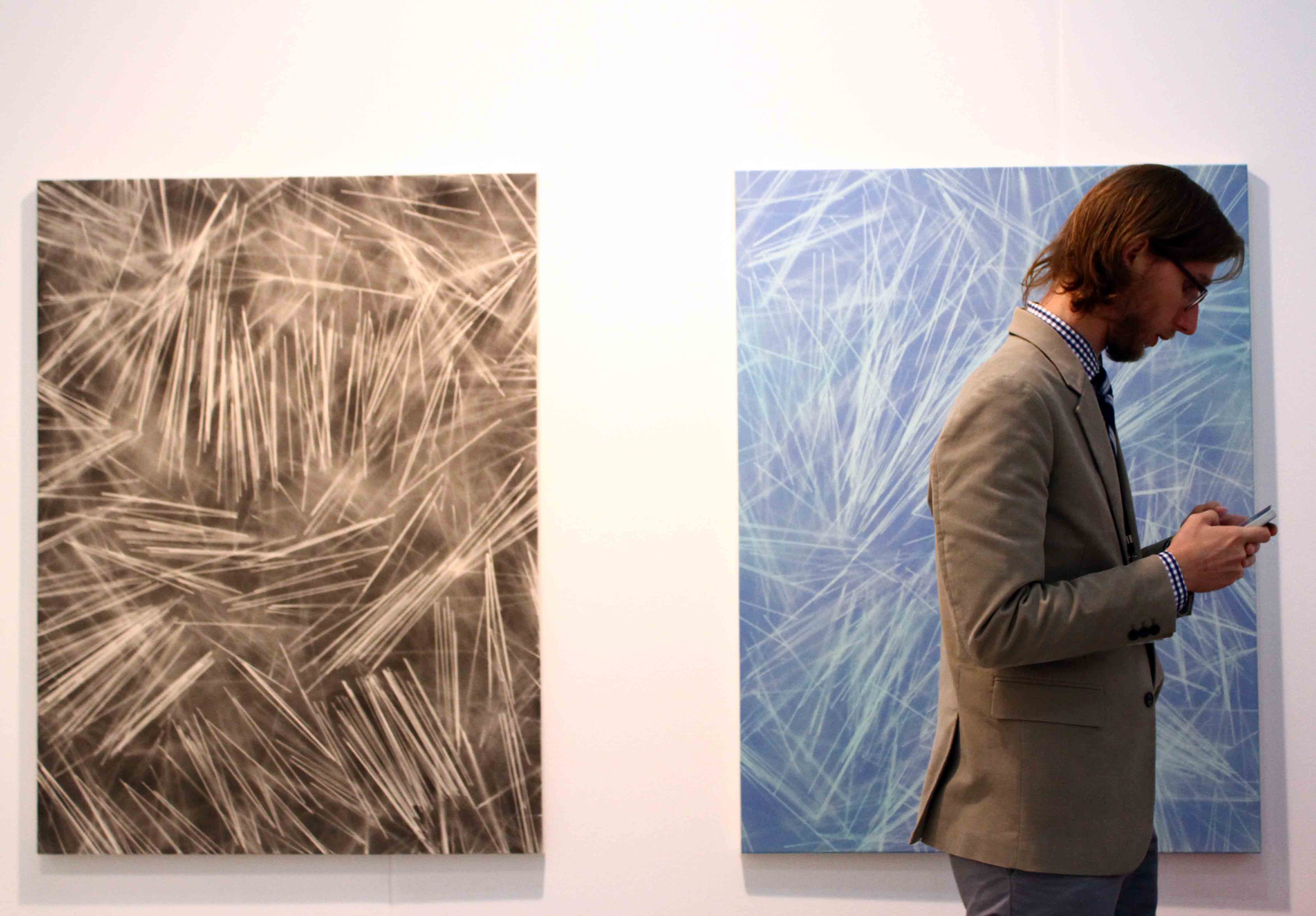 Though Friday’s inaugural proceedings had a mildly frantic feeling to them, everyone seemed to be enjoying themselves. Franklin Parrasch was showing work by Agnes Martin and Rita Ackermann and said about that fair that he “loved it.” Lisa Cooley had nearly her whole team out and thought the fair was “amazing,” and the Journal was hanging two big Leif Ritchies and agreed things were good. All in all 66 galleries from 11 countries were in attendance; a proper start indeed.