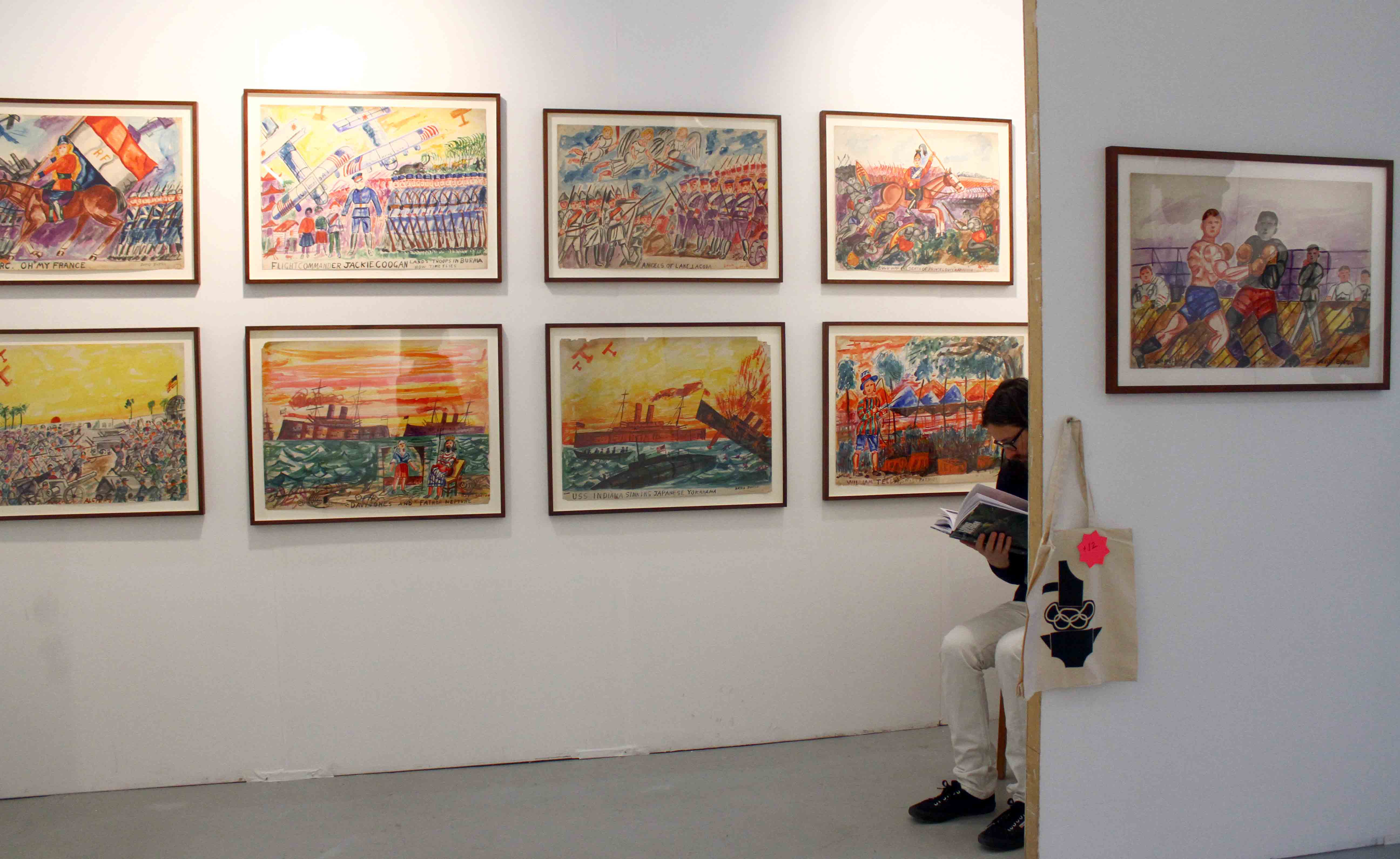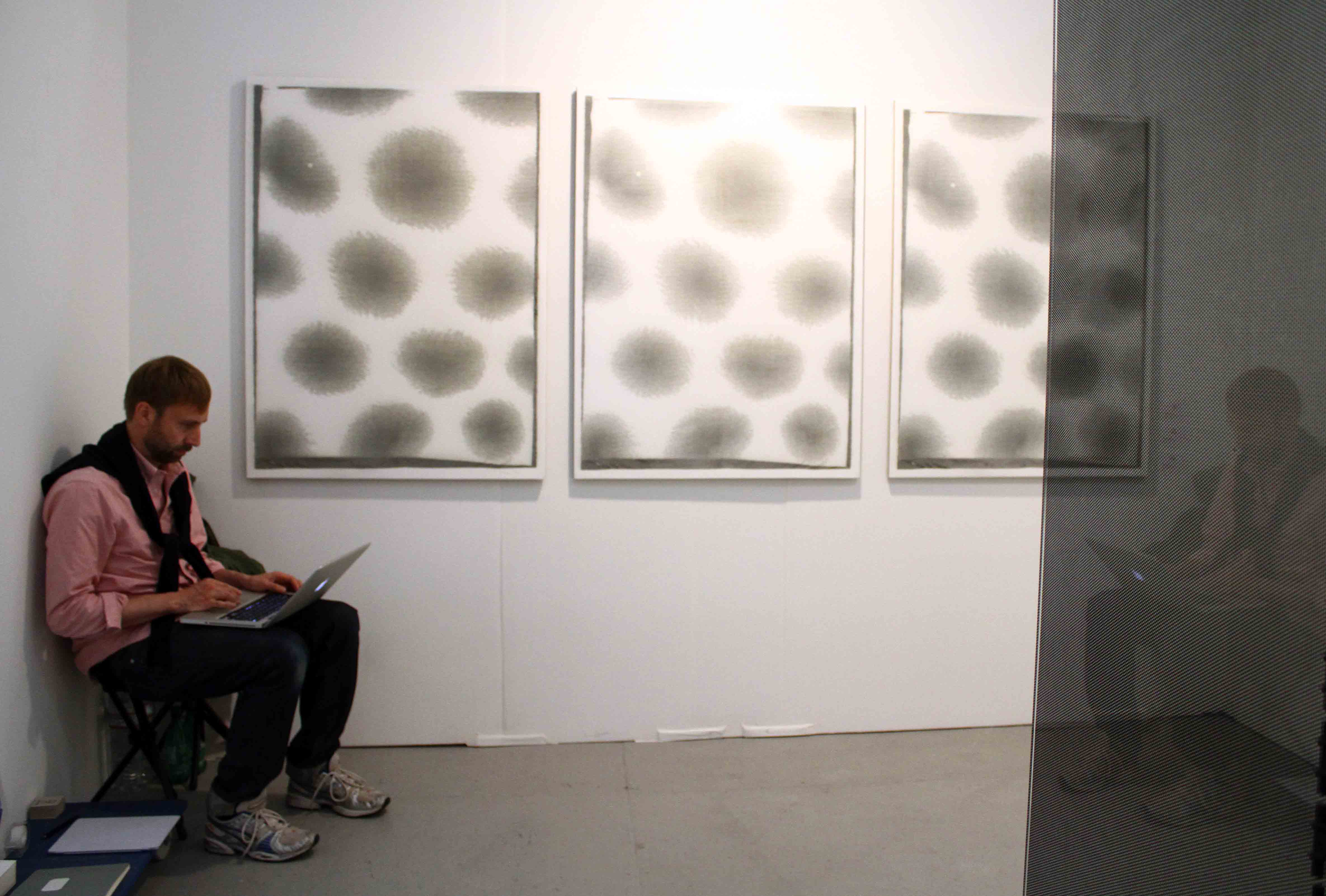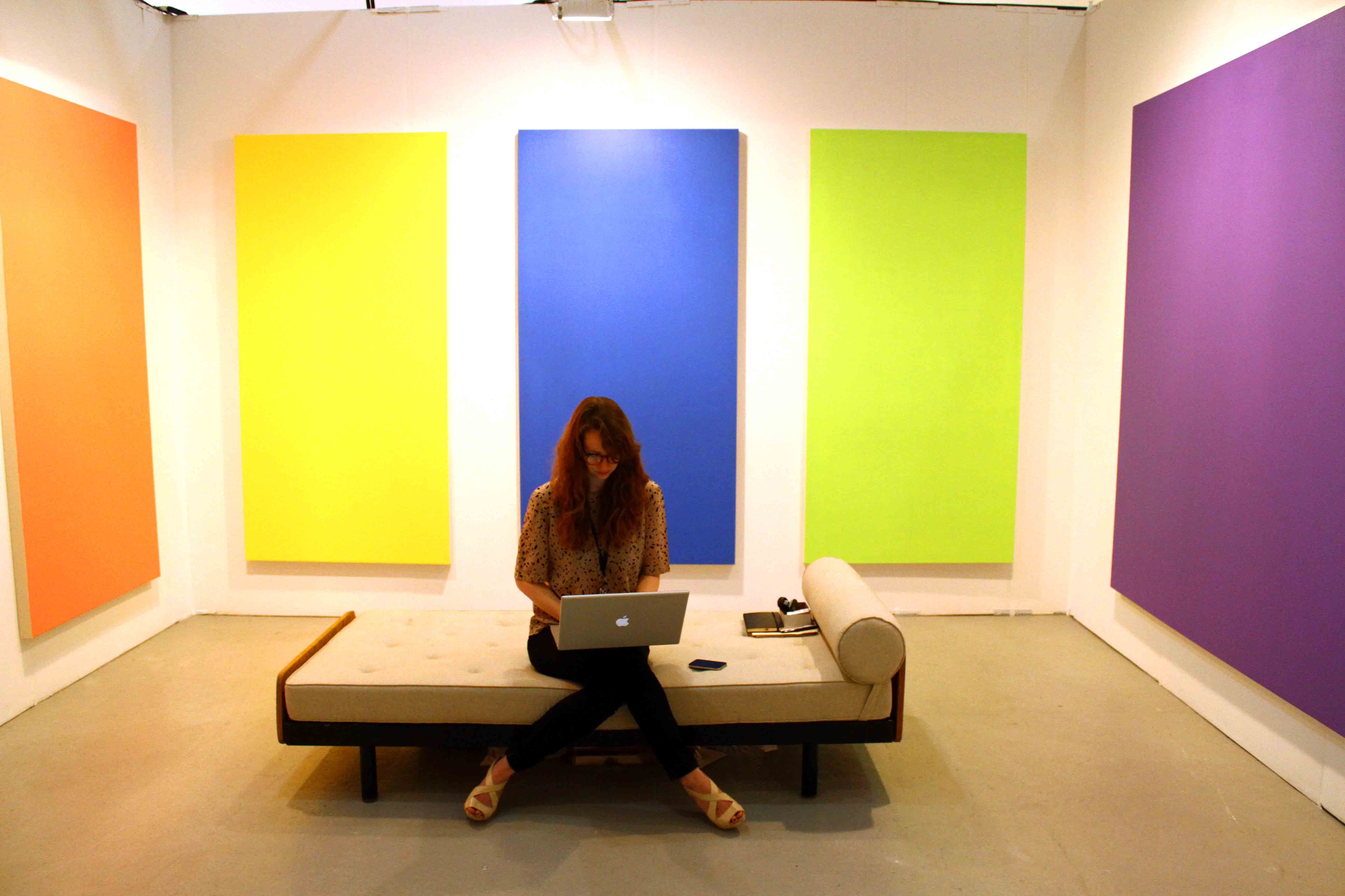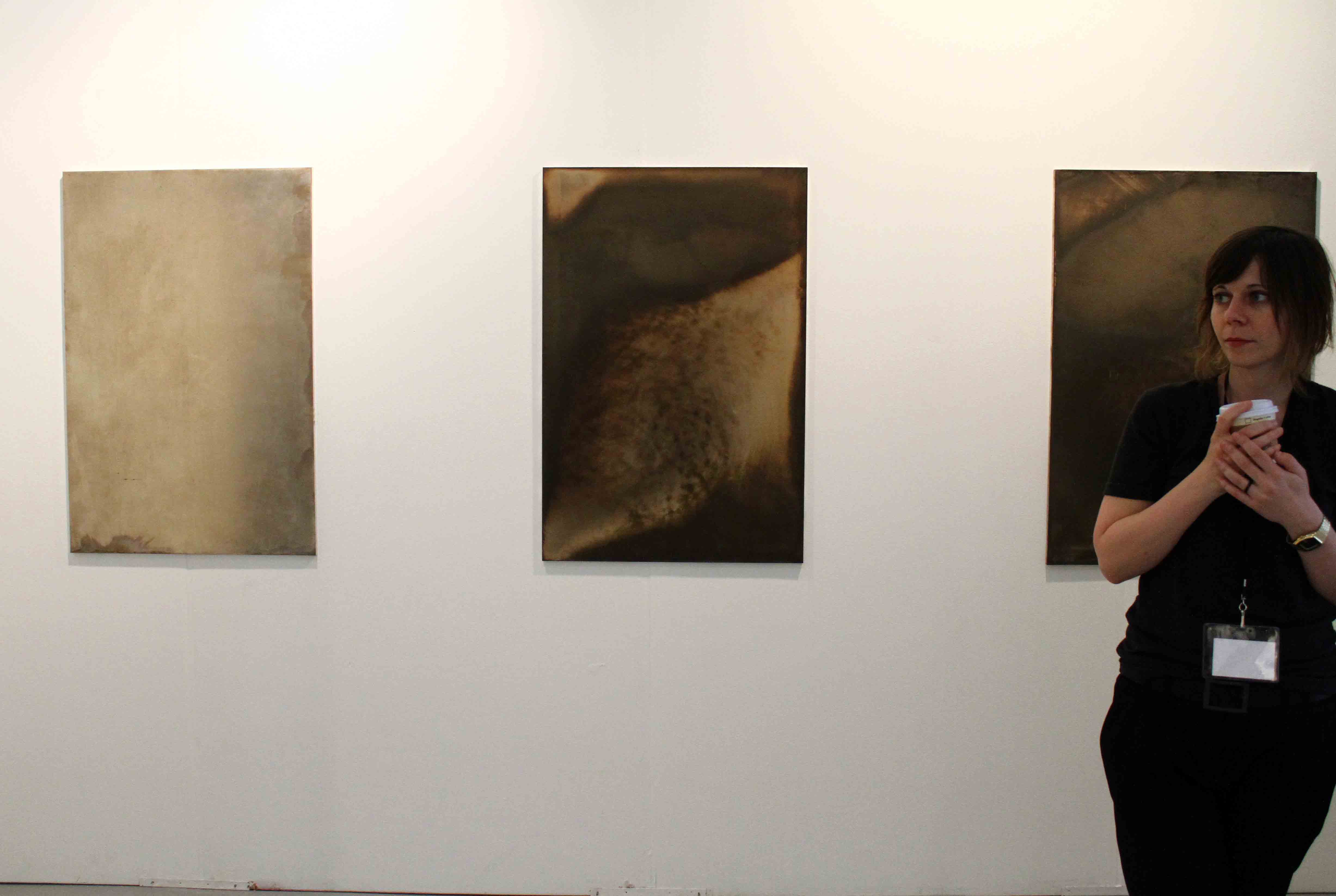 Though Friday’s inaugural proceedings had a mildly frantic feeling to them, everyone seemed to be enjoying themselves. Franklin Parrasch was showing work by Agnes Martin and Rita Ackermann and said about that fair that he “loved it.” Lisa Cooley had nearly her whole team out and thought the fair was “amazing,” and the Journal was hanging two big Leif Ritchies and agreed things were good. All in all 66 galleries from 11 countries were in attendance; a proper start indeed.