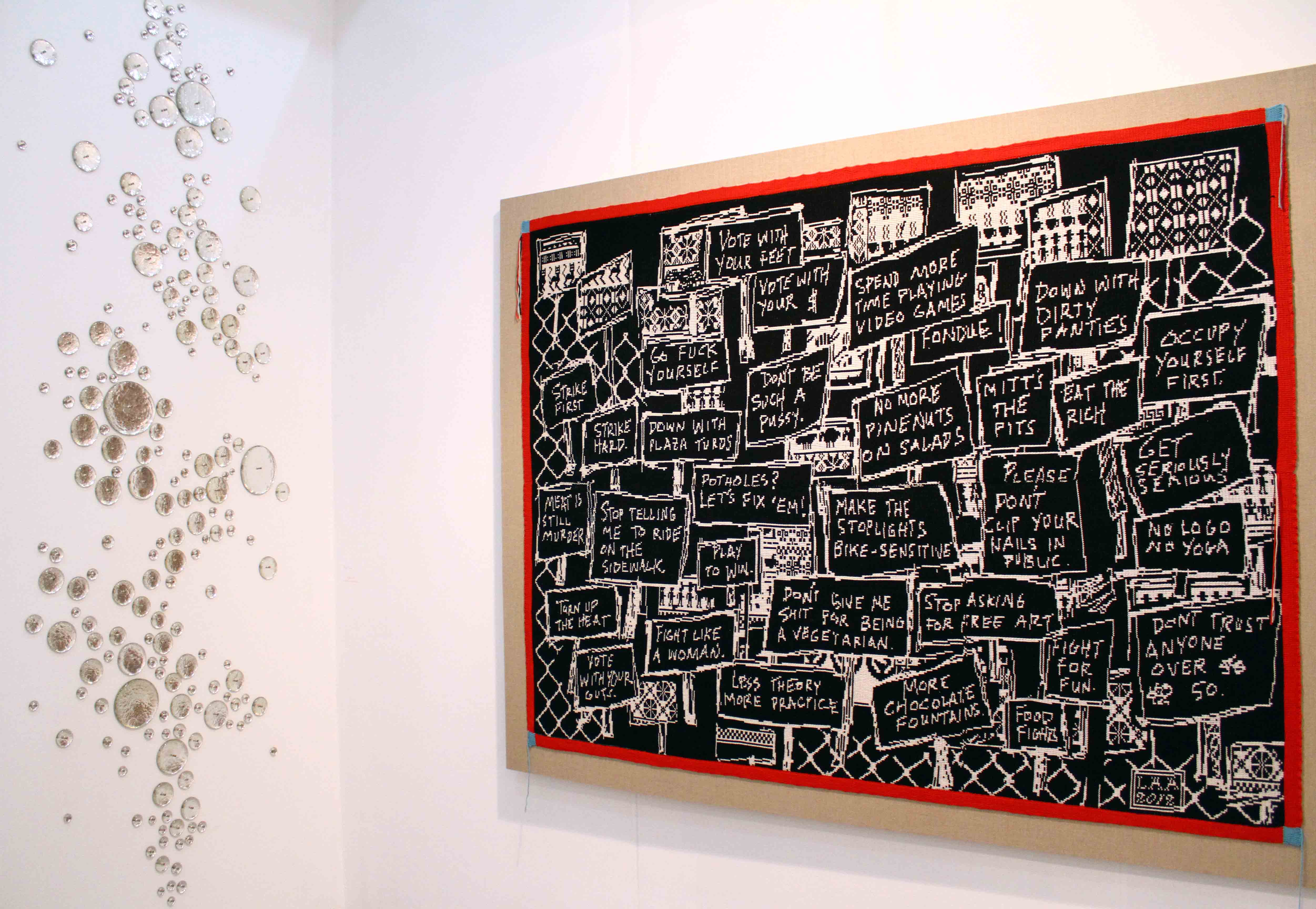 In its eighth year running, the New Art Dealers Alliance (NADA) converged on Center 548—a five-story, roof-top-access building at 548 West 22nd Street in Chelsea—for its first visit to NYC; a long weekend that would coincide with the initial New York Freize Art Fair as well. Among the varied crowd, Aurel Schmidt and Jerry Saltz were in attendance on Friday (Schmidt was premiering a print that was available through Exhibition A for only 24 hours).