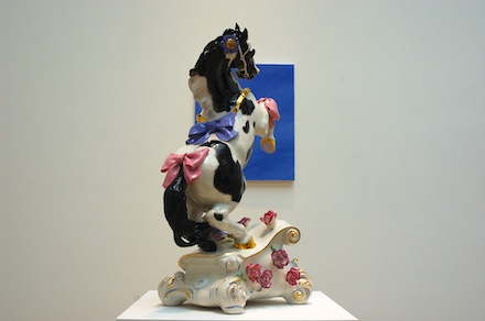 Karen Kilimnick is showing at the Brant Foundation in Greenwich, Connecticut. The opening event occurred this Sunday with a preview by founder Peter Brant and a list of other art world notables such as Jeffrey Deitch, Gavin Brown, Julian Schnabel and May Anderson, John McEnroe, Dan Colen, Nate Lowman, Hanna Liden, Elias Hanson, Rikrit Tiravanija, and Elizabeth Peyton amongst other collectors and members of the press. Backing up to the expansive Greenwich Polo Grounds, the event mostly took place outdoors, under and around a tented table area where visitors snacked on steak frites and lamb roasted within view.