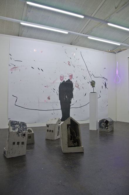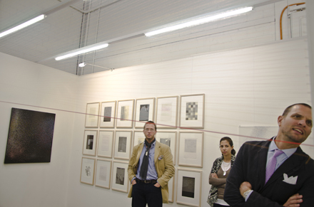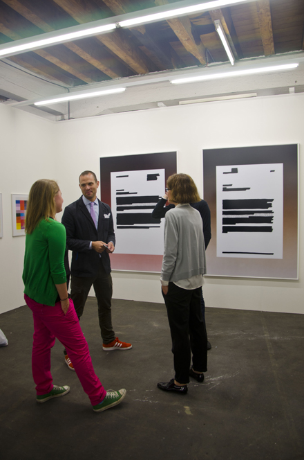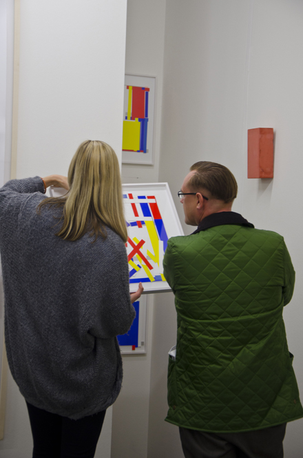 Poppy Sebire exhibits Roger Andersson’s “J” (2009) and Boo Riston in the background