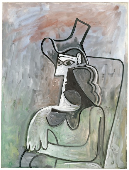 Pablo Picasso‘s “Femme assise au chapeau” via Acquavella Galleries/VAGA