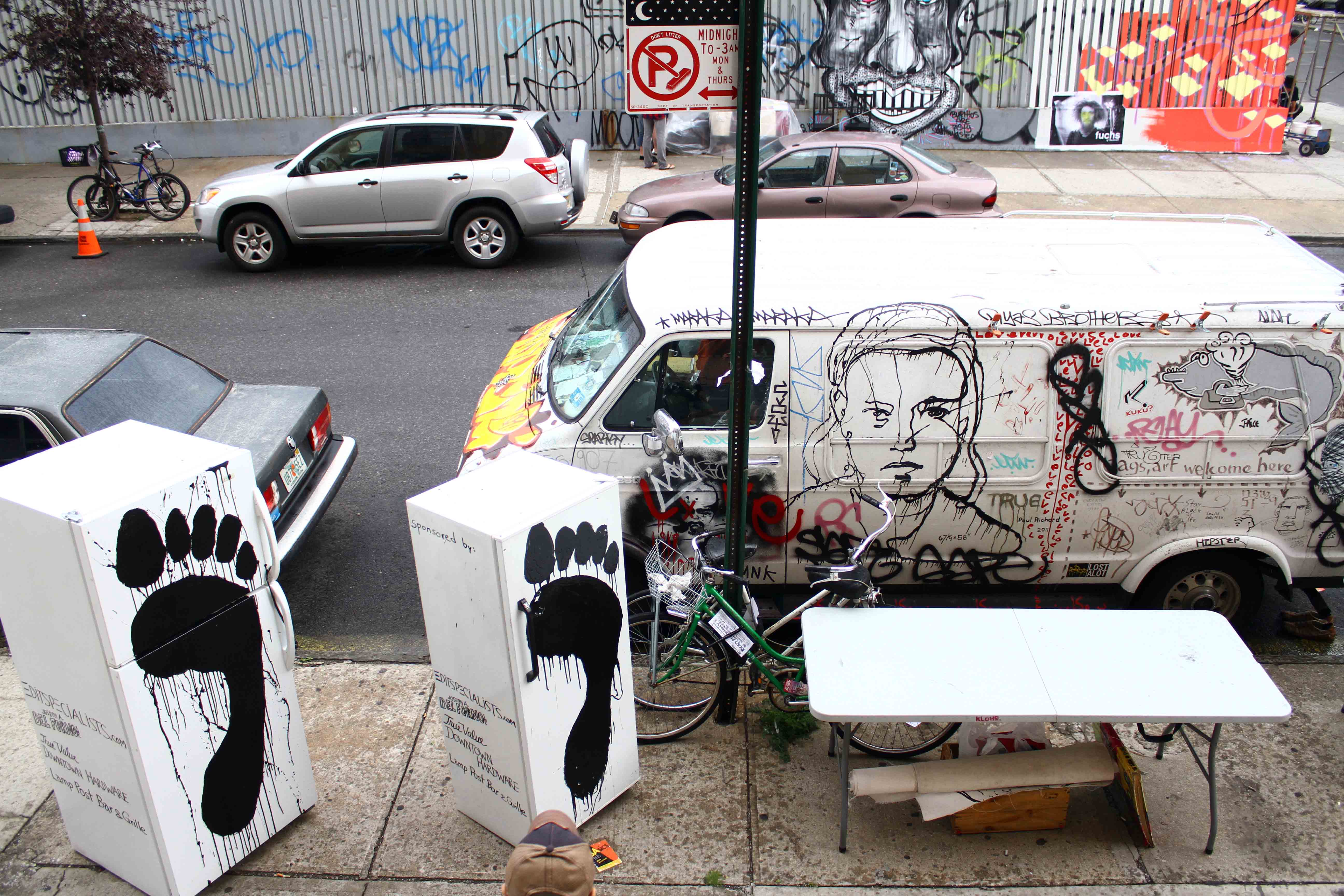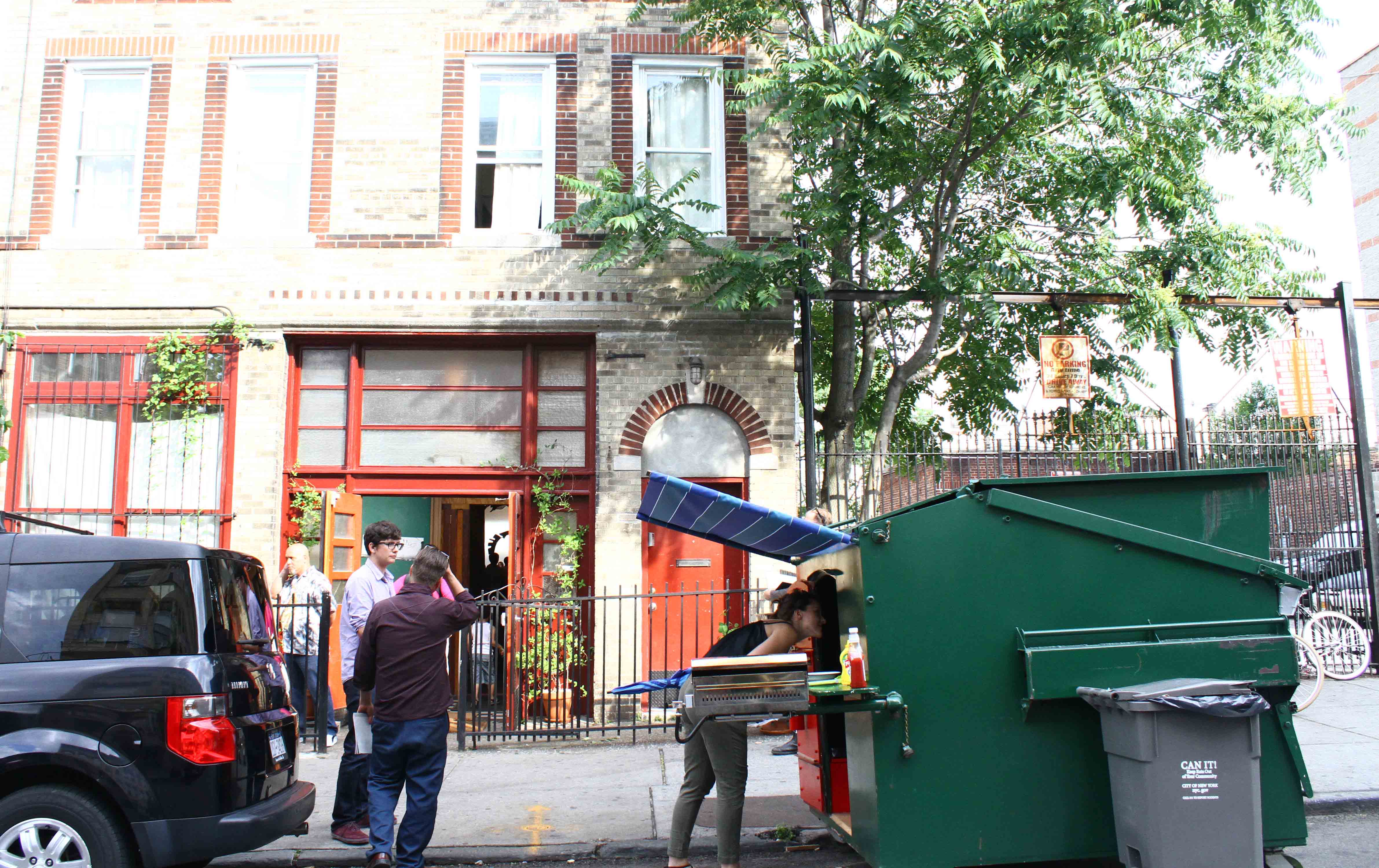 Dumpster turned mobile home outside of Starr Space (Bushwick Basel)