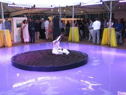 On Saturday, July 28th, the Watermill Center hosted The Big Bang, its 19th Annual Summer Benefit. Held on the performance art center’s expansive Southampton grounds, the event commenced with cocktails for over 1,200 guests, all of whom were invited to explore over twenty site-specific performances and installations scattered throughout the center’s indoor and outdoor spaces, as well as to bid in a silent auction featuring works by Marina Abramovic, Sandro Chia, Shirin Neshat, Dennis Oppenheim, Terry Richardson, Will Ryman, Spencer Tunick, and Aaron Young, among others. A tented dinner for over 650 guests followed, including a live auction led by Simon de Pury, where works by artists such Michelangelo Pistoletto, Anselm Reyle, and Willem de Kooning were offered. Inclement weather threatened the evening, with unwelcome downpours impeding the guests’ ability to view the outdoor works. Nonetheless, the event raised more than $1.5 million for the center, which has actively promoted the creation and dissemination of performance art since its founding by leading “theater artist” Robert Wilson in 1992.