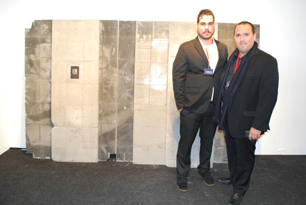 Artist Ramón Miranda Baltrán and gallerist Waltar Otero in front of one of his works. Part of Art Projects/Pinta, photo by A.M. Ekstrand for ArtObserved