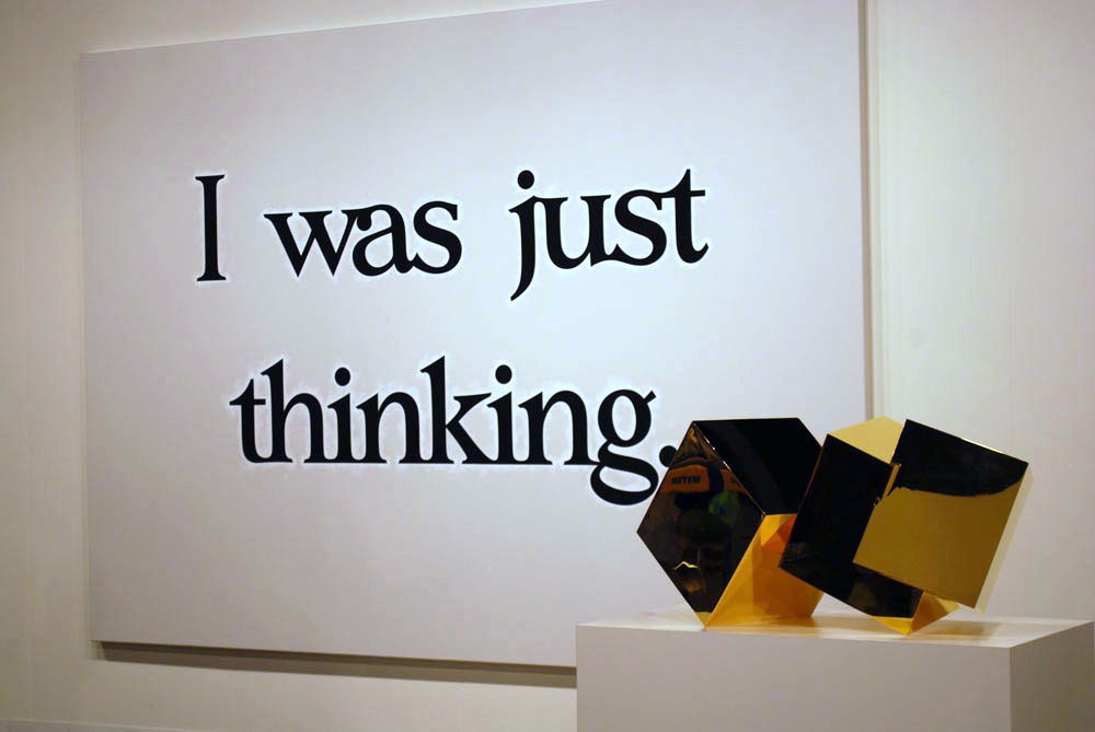 Marian Goodman Gallery, Lawrence Weiner, Cake as Pie Pending Resolve (2012) and John Baldessari Double Play Walking The Dog (2012)