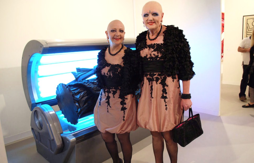 Artist-duo Eva & Adele before Allora & Calzadilla’s Armed Freedom Lying on a Sunbed (2011)