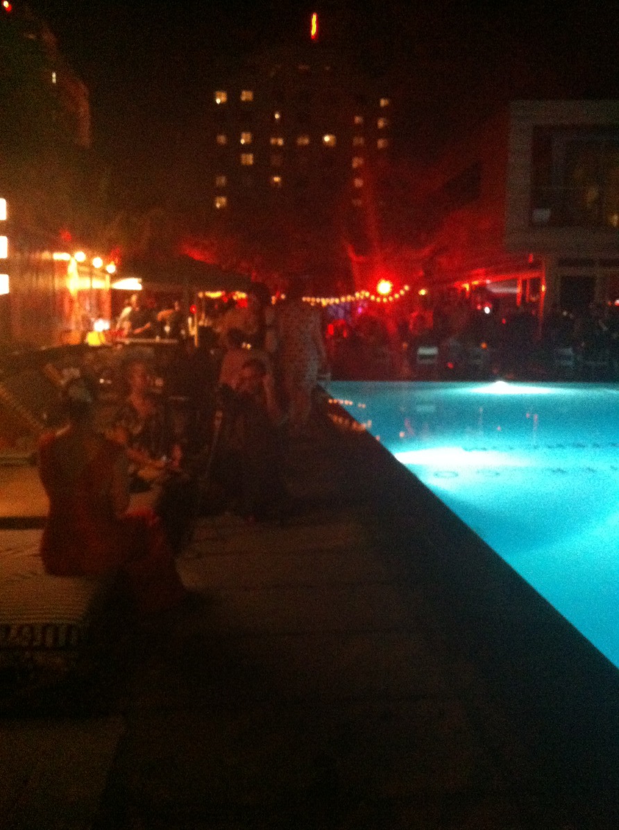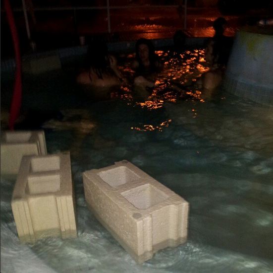 Floating Cinderblocks in the hot tub at the Nada Pool Party Saturday Night