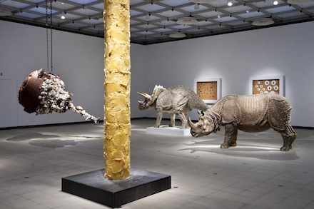 Installation view of works by Sun Yuan & Peng Yu, “I Didn’t Notice What I am Doing,” 2012, Art of Change, photo by Linda Nylind