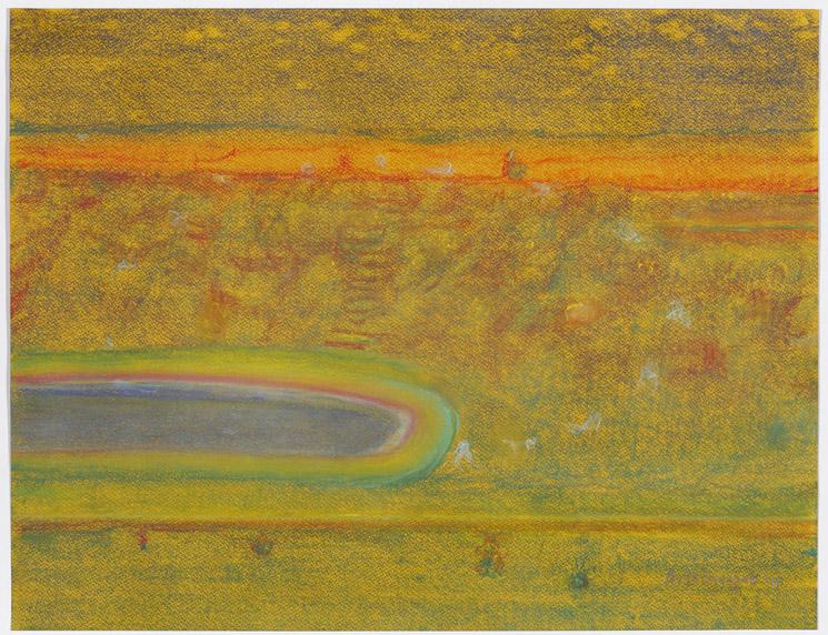 Richard Artschwager’s desert landscapes are the subject of an exhibition at the David Nolan Gallery in New York. Throughout Artschwager’s career, he has been known for his use of non-traditional materials in both sculpture and painting, such as wood, formica and Celotex(a fiberboard used for ceiling panels). He is also recognized for his large grisaille paintings, based on grid structures. These desert landscapes are a clear departure, and emit an emotional sensibility that Artschwager rarely lets us get a glimpse of — only recently has he employed such a vivid exploration of color.