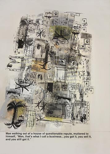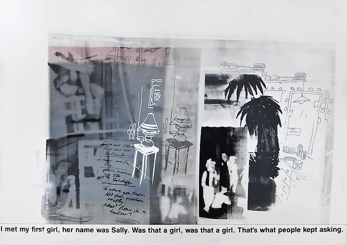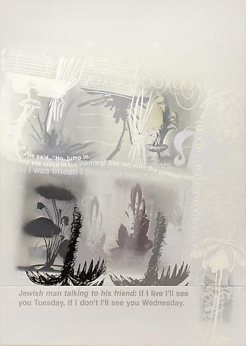 The show, comprising of 10 pieces from Prince’s output during the early 1990s, indicates the artist’s movement into more complex, poly-semantic explorations of image and text. Combining silk-screened selections from mass-media publications with his own familiar illustrations of domestic environments, Prince ties together disparate elements of American culture, allowing the interactions of text and image to create new implications and translations.