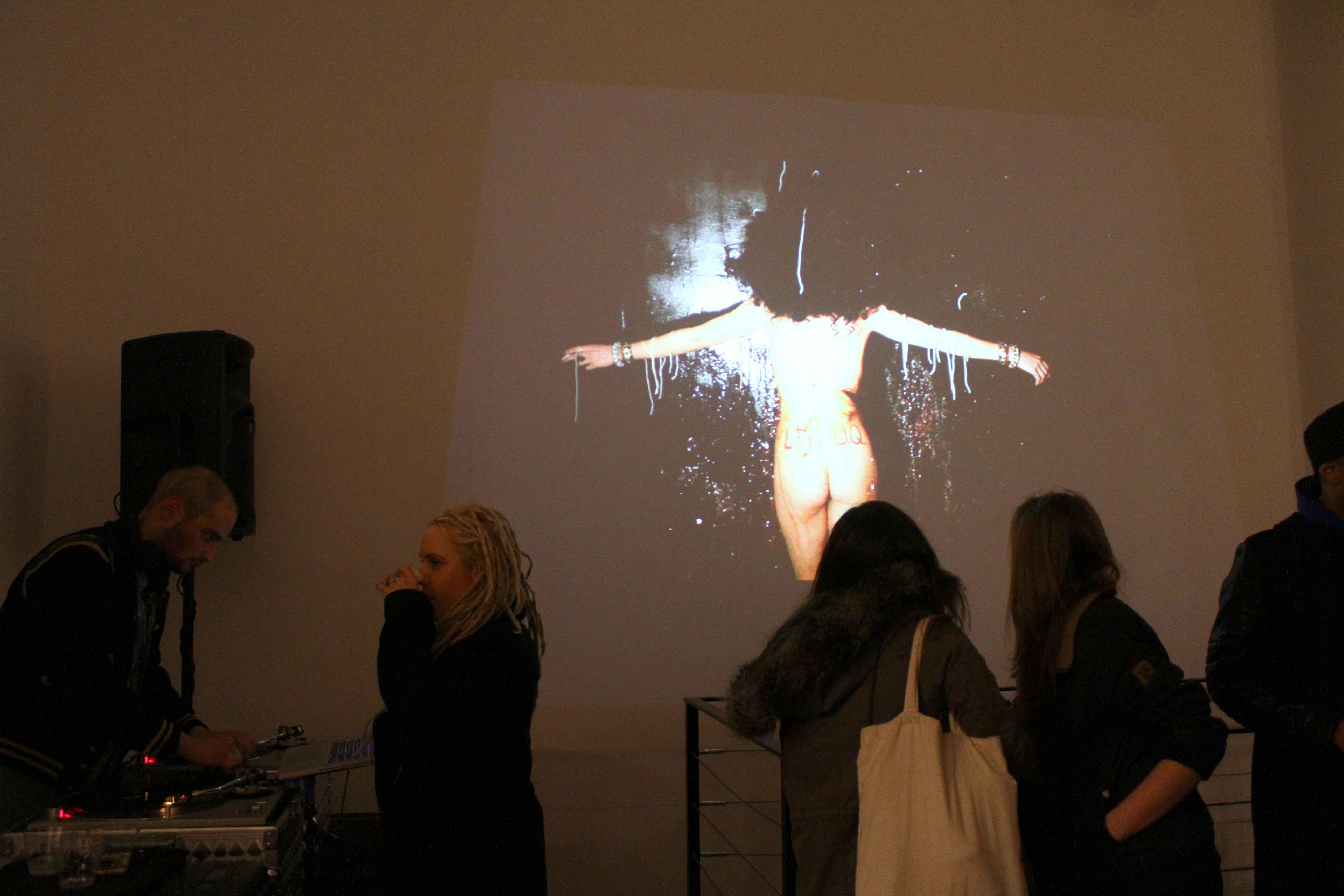AMM: Since Da Vinci used anagrams, I took the alternative titling for the Mona Lisa, La Gioconda, and adapted it to create the anagram Gia Condo. After that, I started working on the paintings and filling out the rest of the show’s presentation, all from the perspective of Gia Condo. I filled the performance with symbols tying back into the history of the painting, like the milk in the video, which nods to speculation that the Mona Lisa was pregnant.
