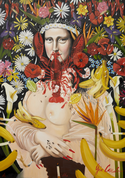 Blending fashion photography, performance, video and painting, the second solo exhibition by artist Andrea Mary Marshall explores the artist’s alter ego – the drag-embracing, Mona Lisa-fixated painter Gia Condo. Across 13 canvases and a series of photographs, the artist explores issues of gender and identity that surround the famous painting of the smiling woman, re-imagining them in the style of predominantly male contemporary artists like Keith Haring, Francis Bacon, and Marcel Duchamp.