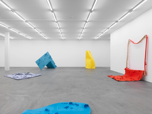 Bent (Why Horses Paint), is a selection of new works by multimedia artist Alex Hubbard, and his first solo show with Galerie Eva Presenhuber in the gallery’s Löwenbräu complex exhibition space. Hubbard’s paintings move beyond the medium’s traditional two dimensional form, bending into shapes and structures which often seek complete autonomy from the wall.
