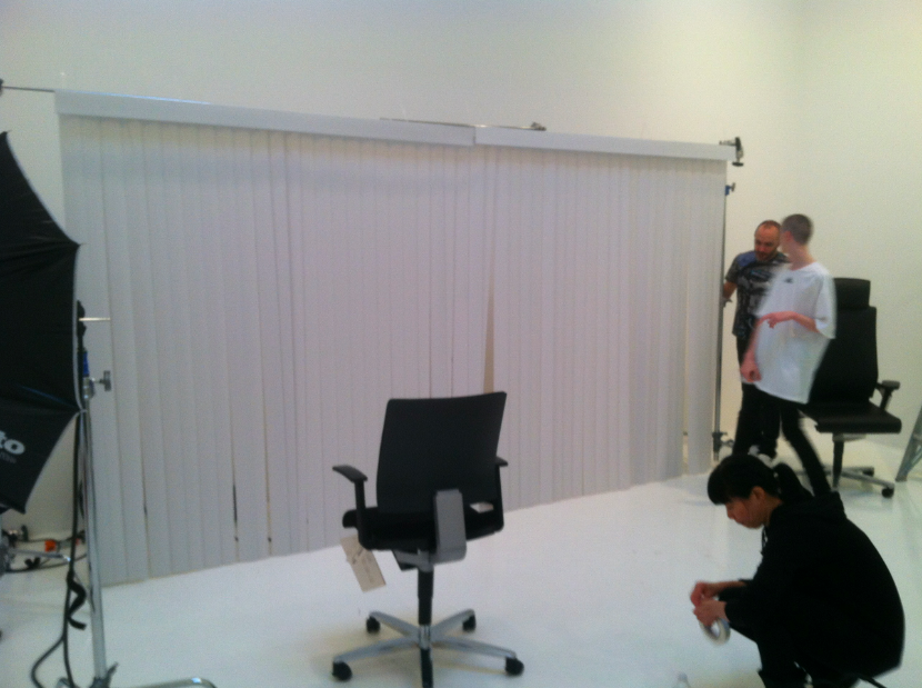 Fittingly enough, presence on-site is notably anticlimactic.  While the space is transformed to allow engagement with the studio as image factory, the viewer cannot help but feel a sense of disconnectedness and alienation.  Familiar scenes and environments lay in pieces, stacked against the walls: little is offered to provide context or emotional mooring with the work. Like the commercially ambivalent photos produced, the atmosphere is surprisingly bare.