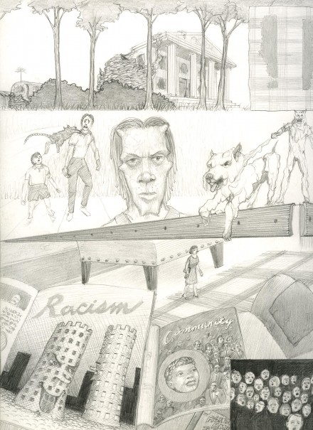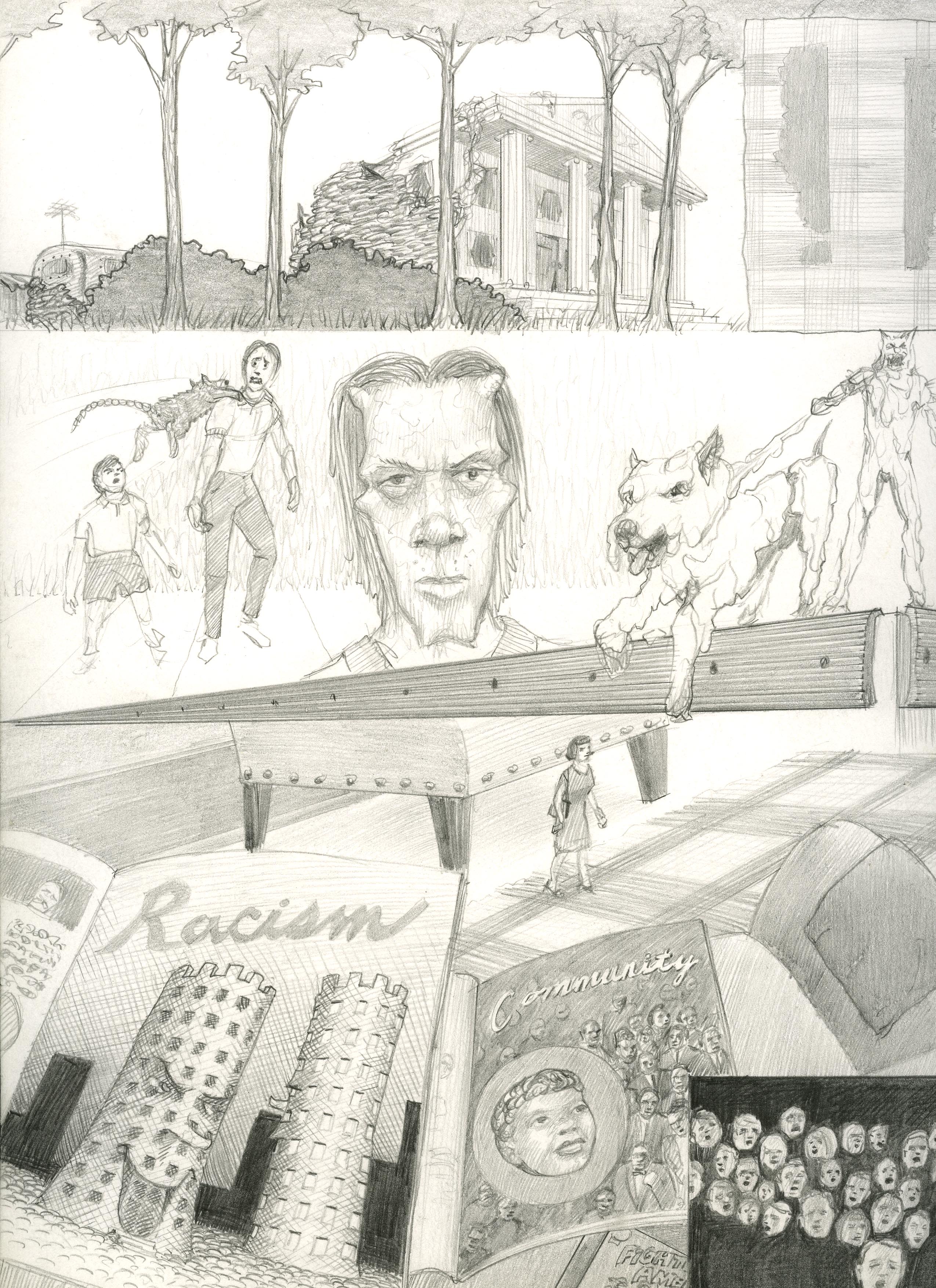 Jim Shaw’s practice is eccentric and wide ranging, embracing a multitude of mediums and approaches from a myriad of sources. Pulling from American subcultures, pop culture, art history, comic books, and his own unconscious, the artist pieces together fragments of everyday life to create surreal landscapes of the human mind. For this show, Kertess has invited Shaw to show a selection of “dream drawings” that the artist has been making since the 90’s. The lightly penciled dream documentations are drafted on paper using the vernacular logic of the surrealist dream image, and laid out in the structure of a comic book page.