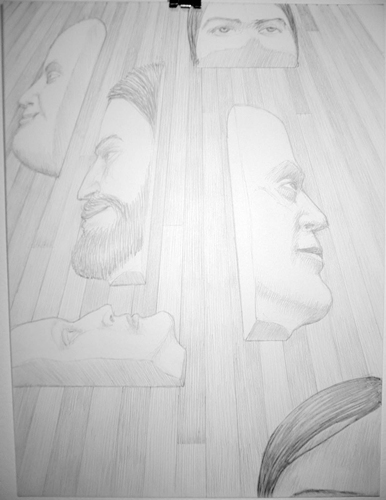These elusive images leave room for the viewer’s mind to make correlations between the images and their own logical or illogical connections. These original dream drawings were also the basis for Shaw’s later “dream objects” sculptures, life sized realizations of objects from his dreams.