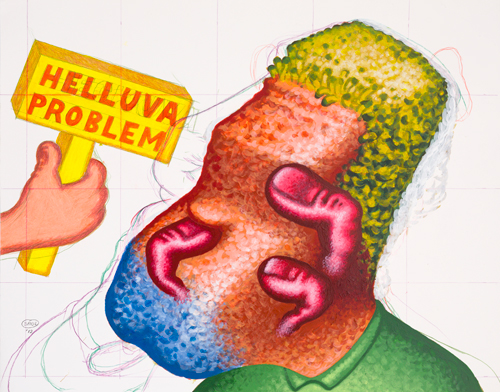Peter Saul, Helluva Problem (2012), via Mary Boone